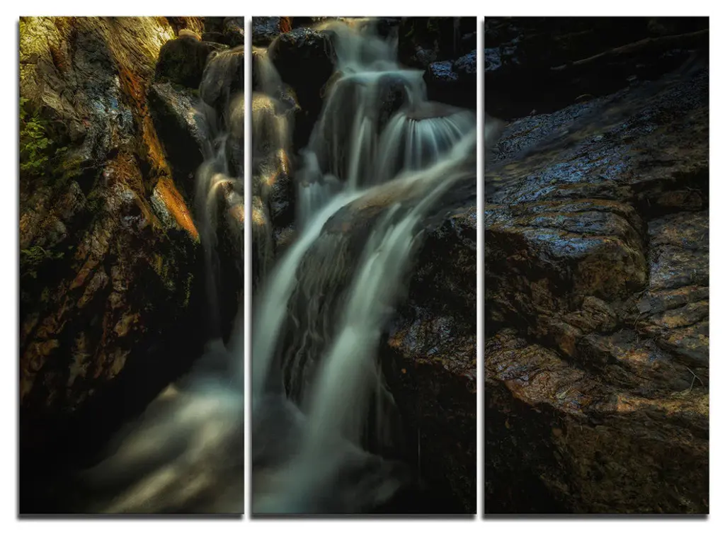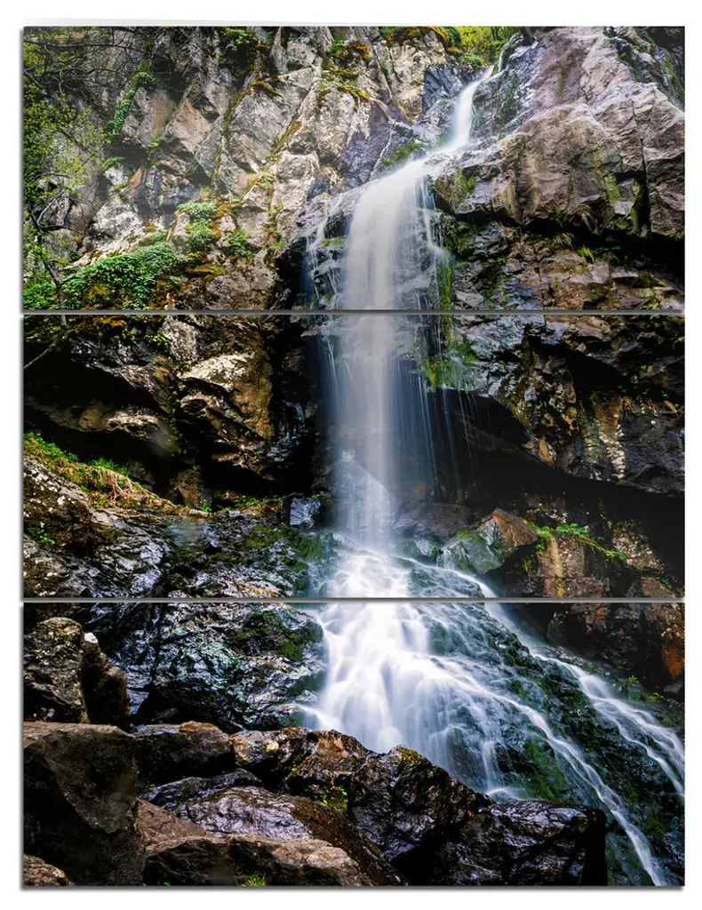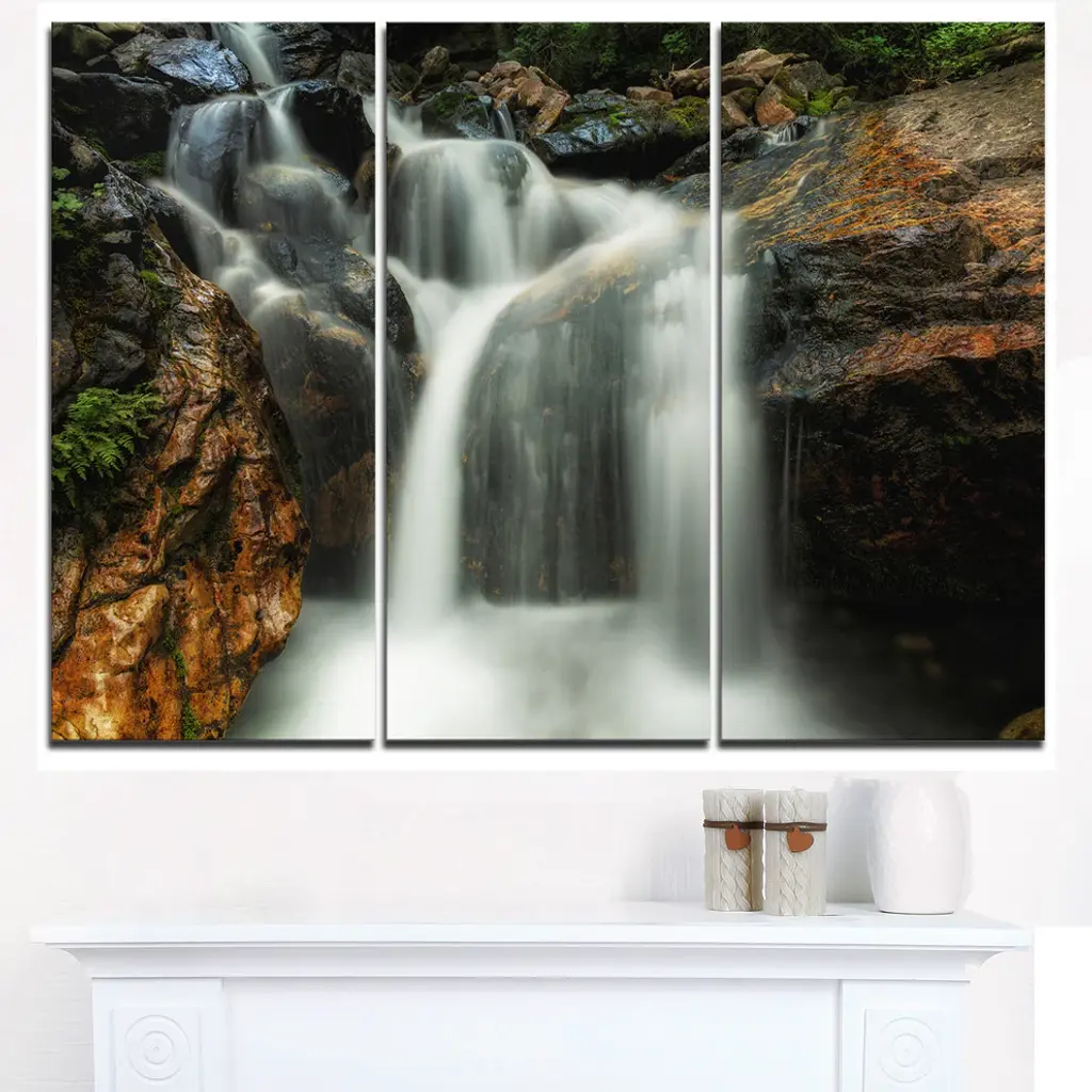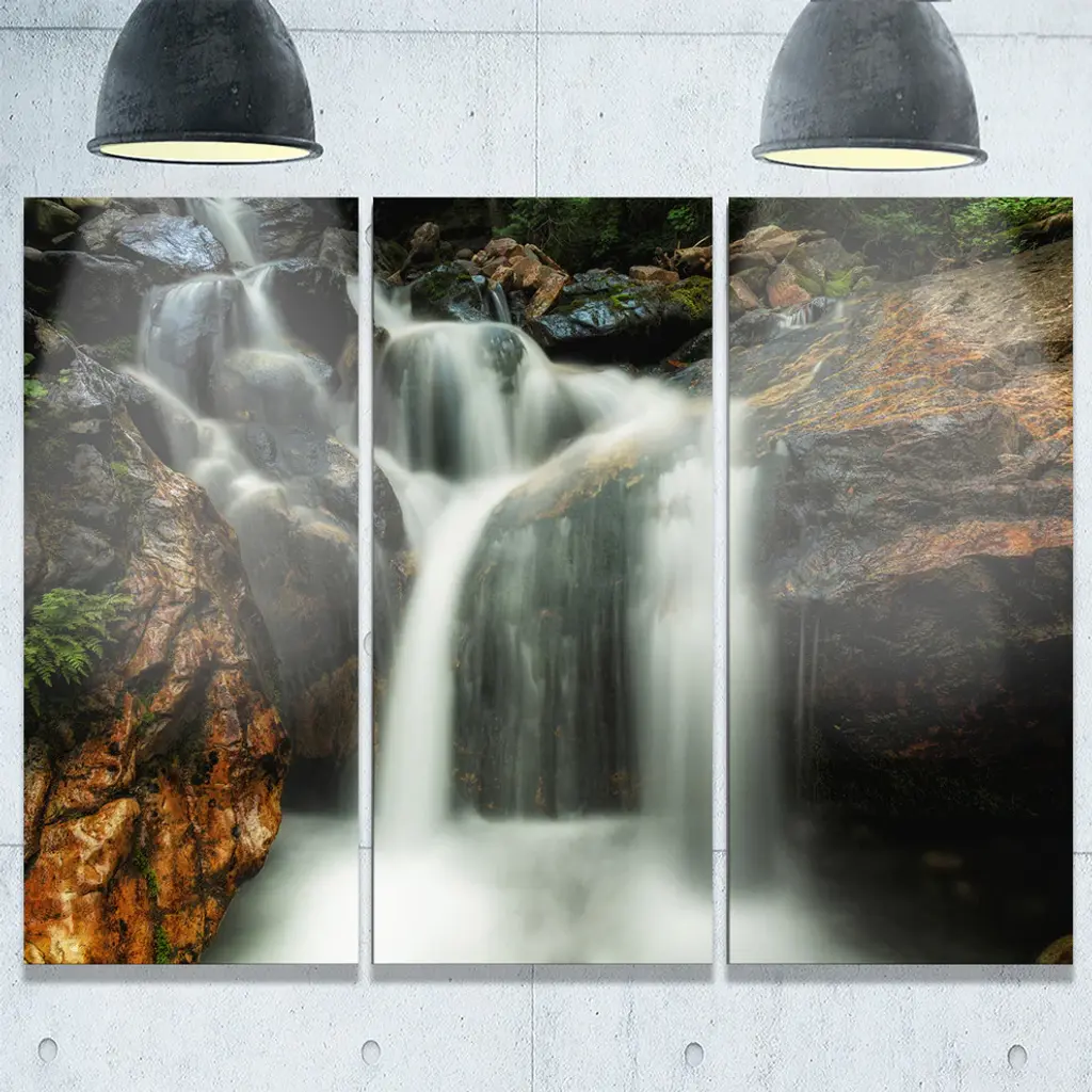"Slow Motion Waterfall On Rocks" Metal Wall Art, 3 Panels, 36"x28"
