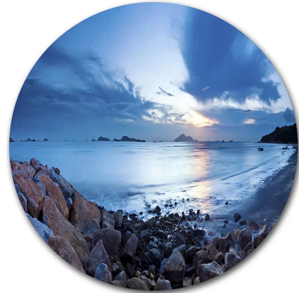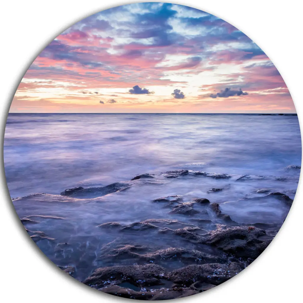 Bring Contemporary Abstraction to your home with this large Circle Metal wall art. This Slow Motion Waves on Rocky Beach Metal Artwork makes it the focal point of any room or office. - White Gloss Coating ensures colors are extra vibrant with light reflection.- Aluminum grade Sheet Metal with 1 inch mounting frame on the back giving the illusion that the artwork is floating on the wall..- Mounting Brackets are included along with instructions.- High Quality Digital images are created directly into a glossy aluminum panel producing a stunning and captivating print into the glossy finish of the metal.- Water, Fire and Scratch resistant HD Aluminum panels.- Looks better than any photo paper and guaranteed to last at least 20 years- Easy to clean with a microfiber cloth. Colors are far superior to regular Canvas Art. - Easy to Hang