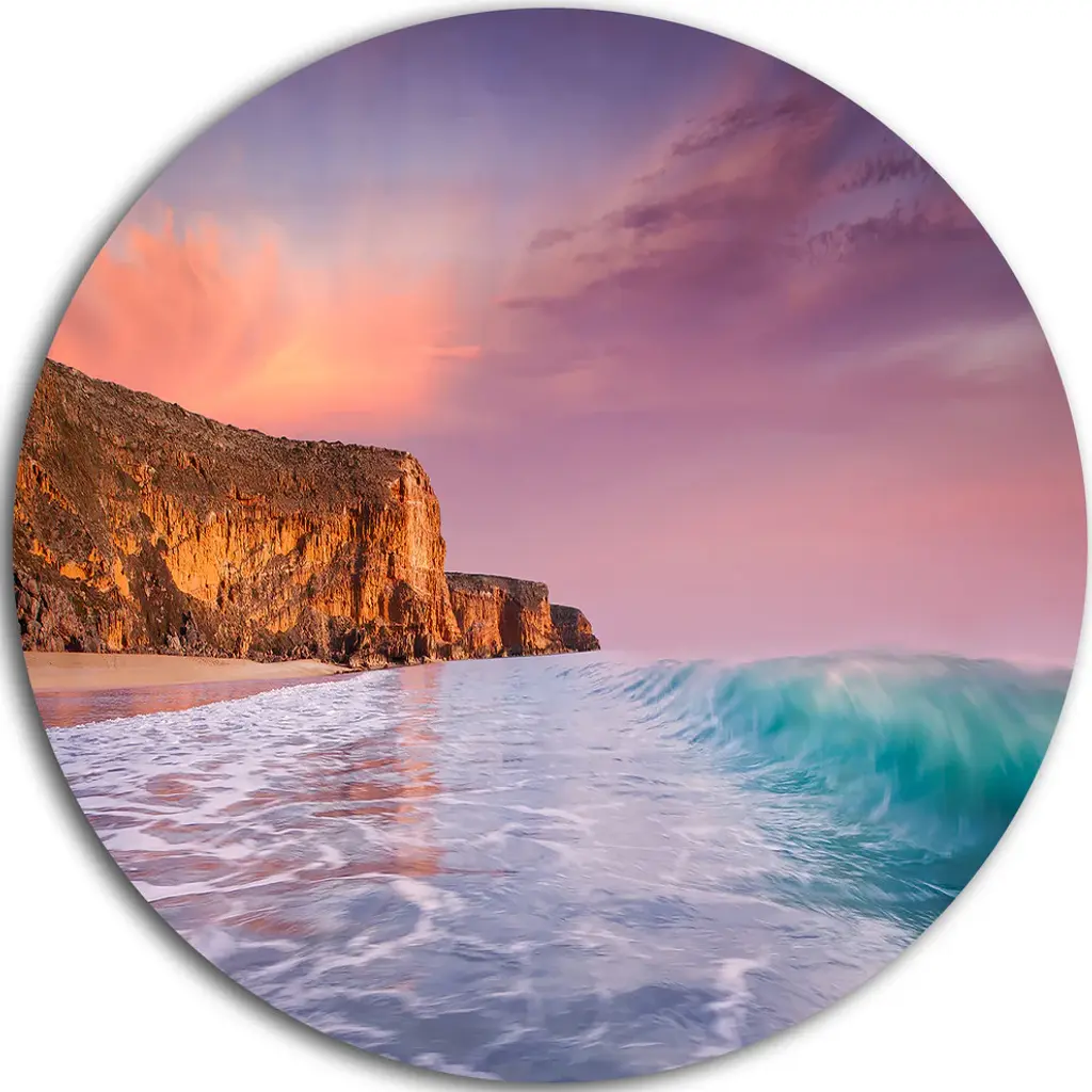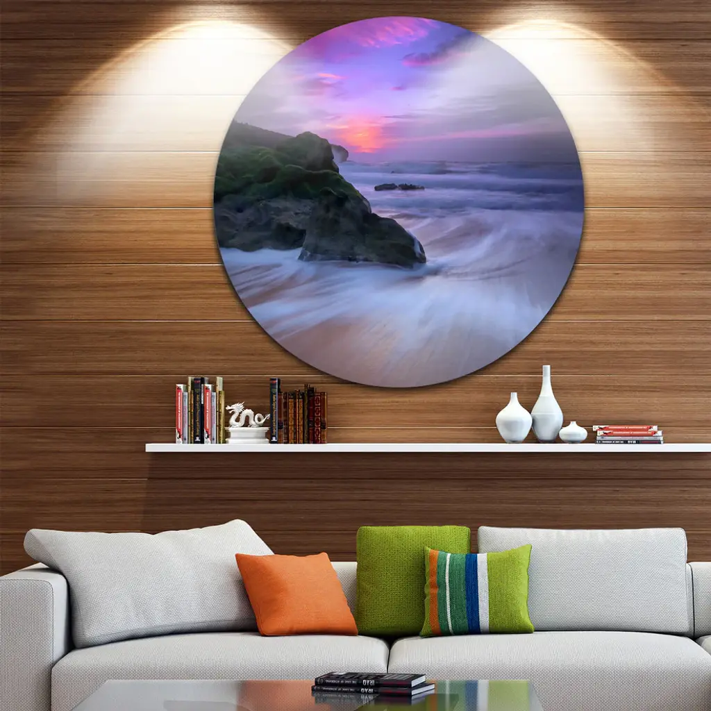 Bring Contemporary Abstraction to your home with this large Circle Metal wall art. This Slow Motion Waves on Winch Beach Metal Artwork makes it the focal point of any room or office. - White Gloss Coating ensures colors are extra vibrant with light reflection.- Aluminum grade Sheet Metal with 1 inch mounting frame on the back giving the illusion that the artwork is floating on the wall..- Mounting Brackets are included along with instructions.- High Quality Digital images are created directly into a glossy aluminum panel producing a stunning and captivating print into the glossy finish of the metal.- Water, Fire and Scratch resistant HD Aluminum panels.- Looks better than any photo paper and guaranteed to last at least 20 years- Easy to clean with a microfiber cloth. Colors are far superior to regular Canvas Art. - Easy to Hang