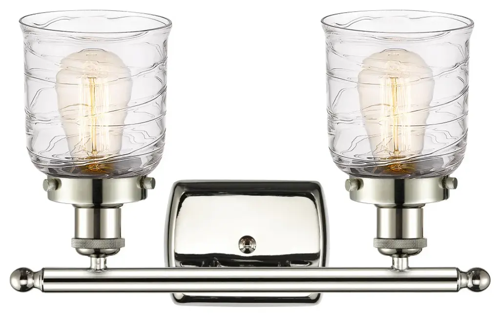 Small Bell 2 Light Bath Vanity Light, Polished Nickel, Deco Swirl