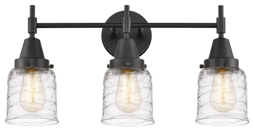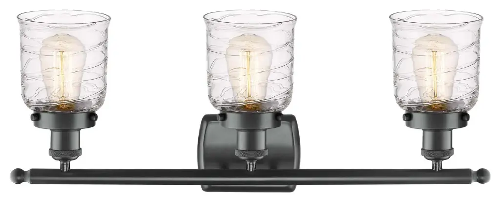 Small Bell 3 Light Bath Vanity Light, Matte Black, Deco Swirl