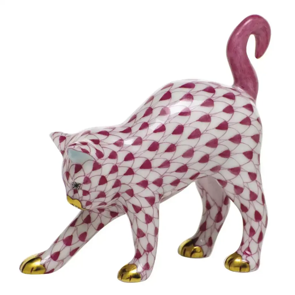Endearing animals meek and bold, large and small, demure and majestic eagerly await the chance to melt your heart and warm your home. Each is brought to life by the skilled hands of artisans crafting and painting these charming porcelain creatures. The famous fishnet décor adorning many of the animals took form in 1858 when a Herend painter became inspired by a fishscale design he saw on a Chinese porcelain plate and painted a similar pattern onto a rooster figurine to imitate feathers. The rest is history, with the fishnet design now a Herend signature prized worldwide. Now the biggest porcelain manufactory in Europe, Herend was founded in 1826 to produce earthenware in the small Hungarian village for which it was named. At the time, Hungary was flooded with low-cost pottery, but in 1839, Mor Fischer became the Manufactory’s new owner and he decided to focus on producing dinnerware replacement pieces for Europe’s royal families to complement their valuable porcelain patterns from Germany and the Far East. As his client base grew, Fischer commissioned his artists to begin designing dinnerware patterns of their own. Queen Victoria’s 1851 purchase of a large set for Windsor Castle was a milestone, setting the stage for aristocrats throughout Europe to clamor for Herend in their estates. In the 1850s, Herend added meticulously-crafted figurines to its creations. Herend’s trademark fishnet pattern, which is widely recognized and prized as Herend’s signature design, started in 1858 when an artist who was intrigued with a Chinese plate’s fish scale design painted it onto a rooster figurine to imitate feathers.
