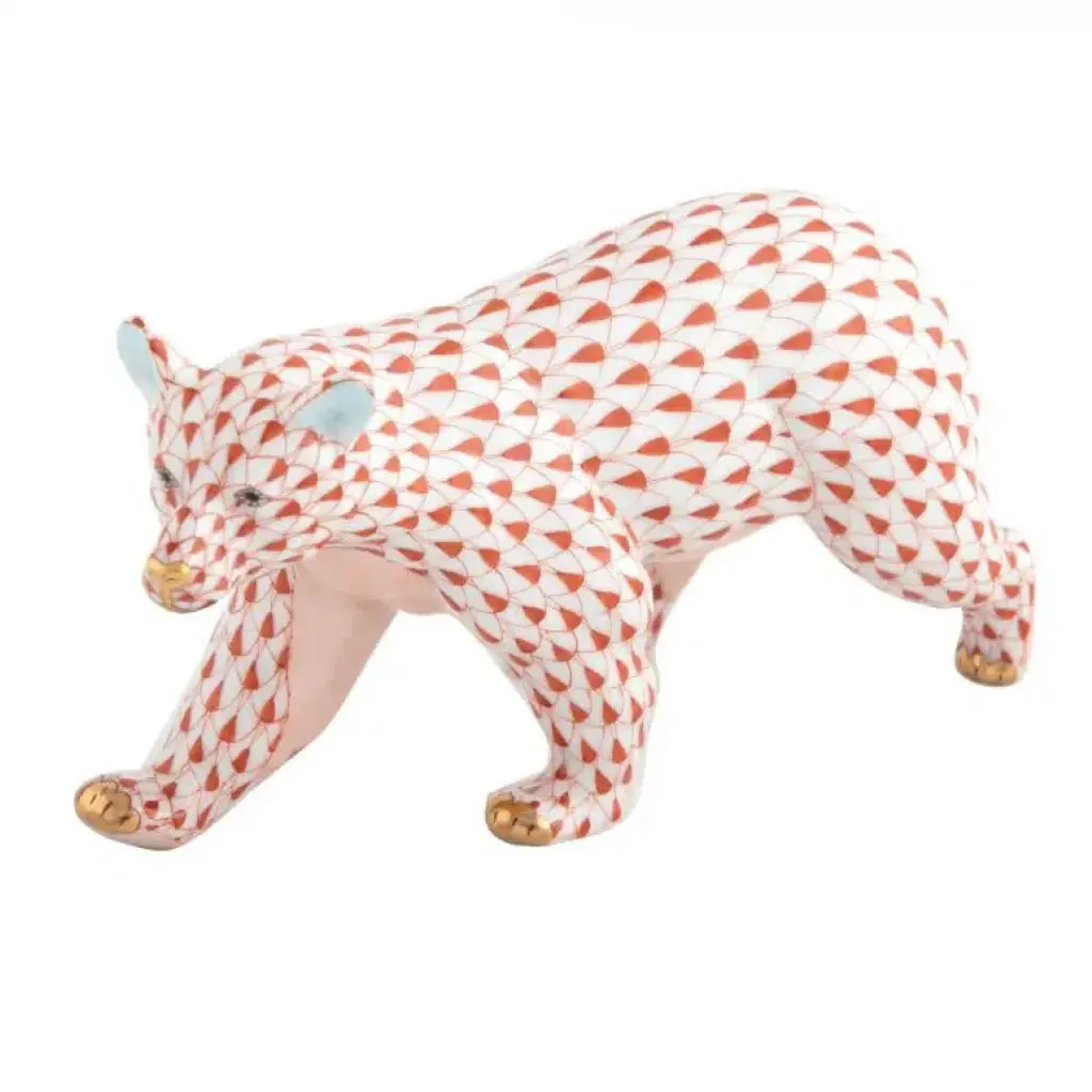 Endearing animals meek and bold, large and small, demure and majestic eagerly await the chance to melt your heart and warm your home. Each is brought to life by the skilled hands of artisans crafting and painting these charming porcelain creatures. The famous fishnet décor adorning many of the animals took form in 1858 when a Herend painter became inspired by a fishscale design he saw on a Chinese porcelain plate and painted a similar pattern onto a rooster figurine to imitate feathers. The rest is history, with the fishnet design now a Herend signature prized worldwide. Now the biggest porcelain manufactory in Europe, Herend was founded in 1826 to produce earthenware in the small Hungarian village for which it was named. At the time, Hungary was flooded with low-cost pottery, but in 1839, Mor Fischer became the Manufactory’s new owner and he decided to focus on producing dinnerware replacement pieces for Europe’s royal families to complement their valuable porcelain patterns from Germany and the Far East. As his client base grew, Fischer commissioned his artists to begin designing dinnerware patterns of their own. Queen Victoria’s 1851 purchase of a large set for Windsor Castle was a milestone, setting the stage for aristocrats throughout Europe to clamor for Herend in their estates. In the 1850s, Herend added meticulously-crafted figurines to its creations. Herend’s trademark fishnet pattern, which is widely recognized and prized as Herend’s signature design, started in 1858 when an artist who was intrigued with a Chinese plate’s fish scale design painted it onto a rooster figurine to imitate feathers.