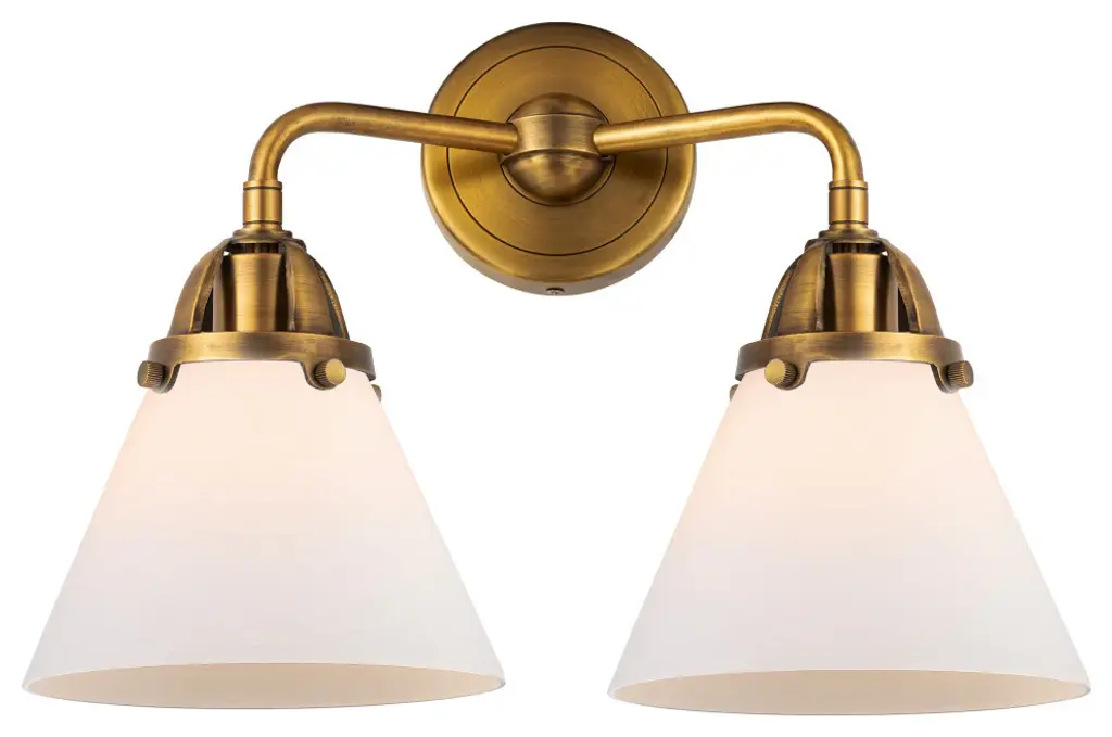 The Nouveau 2 is a highly detailed work of art that draws the eyes into its base and arm detail. The true show stopping piece is the beautifully curved glass shade that''s sure to wow you and guests alike.Features:Fixture can be hung with bulbs facing up or down4.5 inch 2mm heavy cast backplateDistance from outlet opening to top of fixture 2.25 inchesRated for 100 watt maximum per socketUL/CUL Damp RatedCompatible with Incandescent, LED, Fluorescent and Halogen bulbsNumber of Bulbs: 2Bulb Wattage: 3.5Bulb Type: LEDBulb Included: IncludedVoltage: 120Finish: Black Antique Brass, Matte White