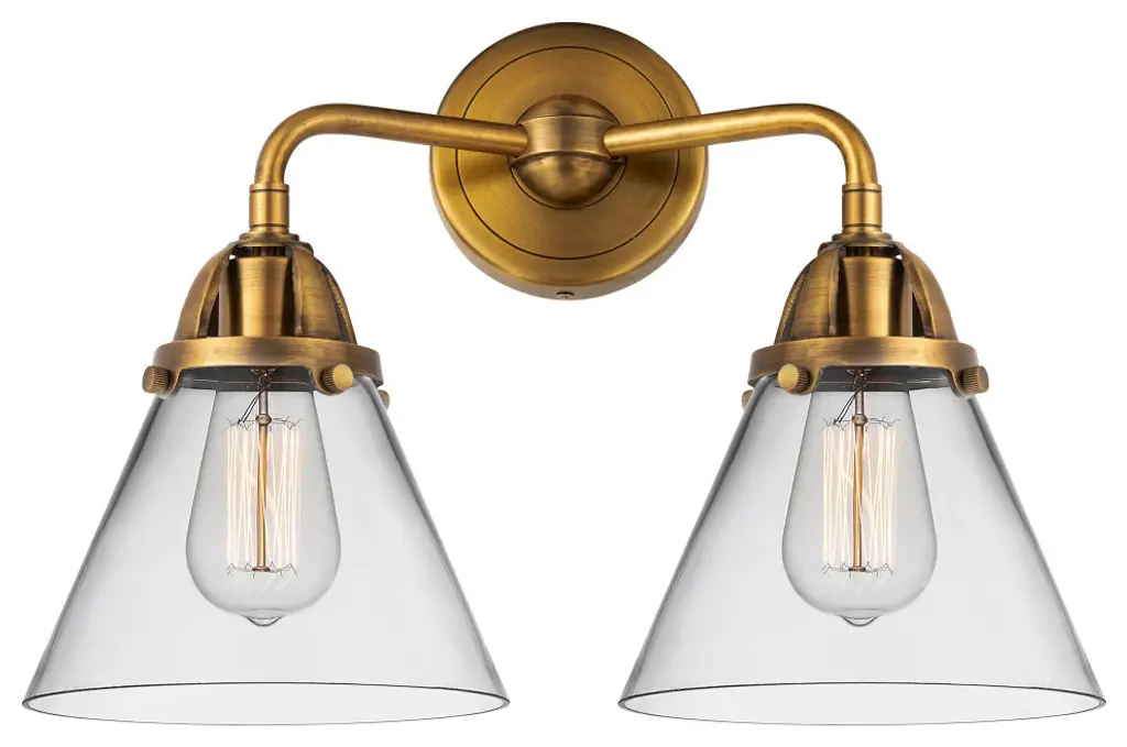 Small Cone Bath Vanity Light, Brushed Brass, Clear, Clear