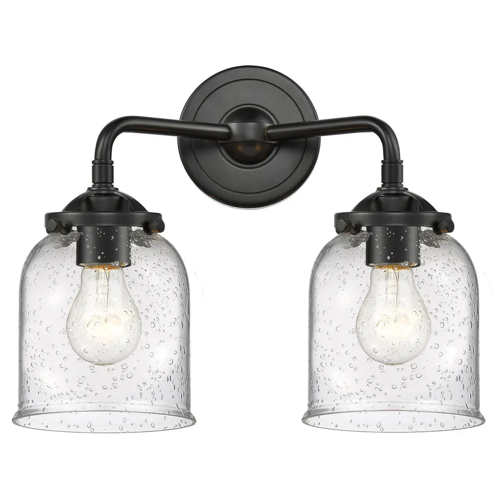 The Nouveau 2 is a highly detailed work of art that draws the eyes into its base and arm detail. The true show stopping piece is the beautifully curved glass shade that''s sure to wow you and guests alike.Features:Fixture can be hung with bulbs facing up or down4.5 inch 2mm heavy cast backplateDistance from outlet opening to top of fixture 2.25 inchesRated for 100 watt maximum per socketUL/CUL Damp RatedCompatible with Incandescent, LED, Fluorescent and Halogen bulbsNumber of Bulbs: 2Bulb Wattage: 60Bulb Type: IncandescentBulb Included: Not IncludedVoltage: 120Finish: Matte Black, Seedy