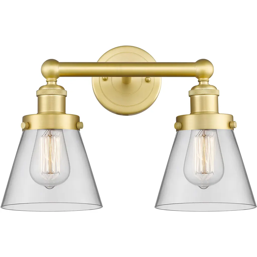 Small Cone Bath Vanity Light, Satin Gold, Clear, Clear