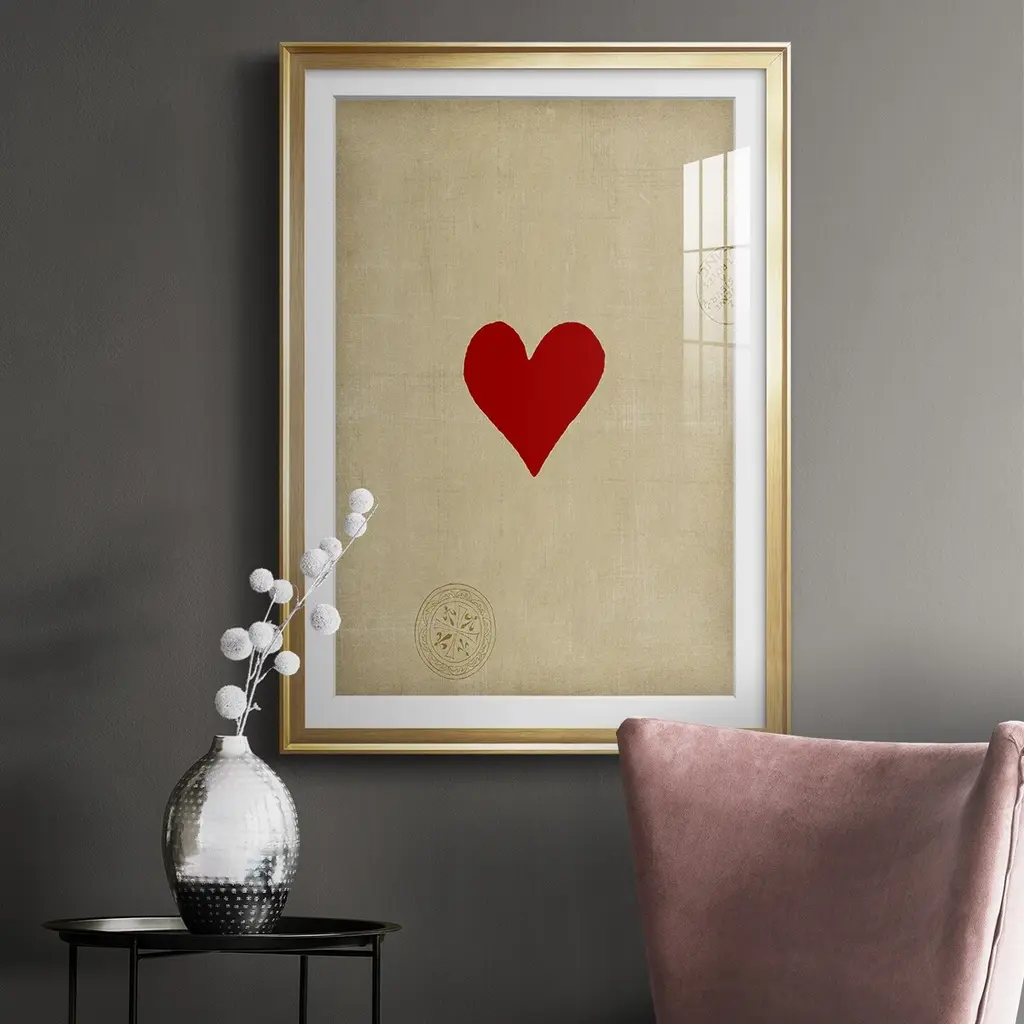 Small Heart Premium Framed Print - Ready to Hang A Premium Framed Print created to last. Framed in distressed wood and available in an array of sizes and colors Featuring a beveled a solid wood stretcher bar, each piece comes ready to hand 4 SIZES AVAILABLE 30.5''X42.5'' - Overall Size 26.5'X36.5'' - Overall Size 22.5''x30.5'' - Overall Size 18.5''x24.5'' - Overall Size Each piece is made to order. Each piece comes with hanging hardware. Made in the USA Ready to Hang Giclee Paper Print Acrylic Glass Beveled Matt Board