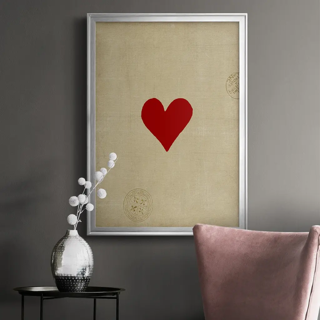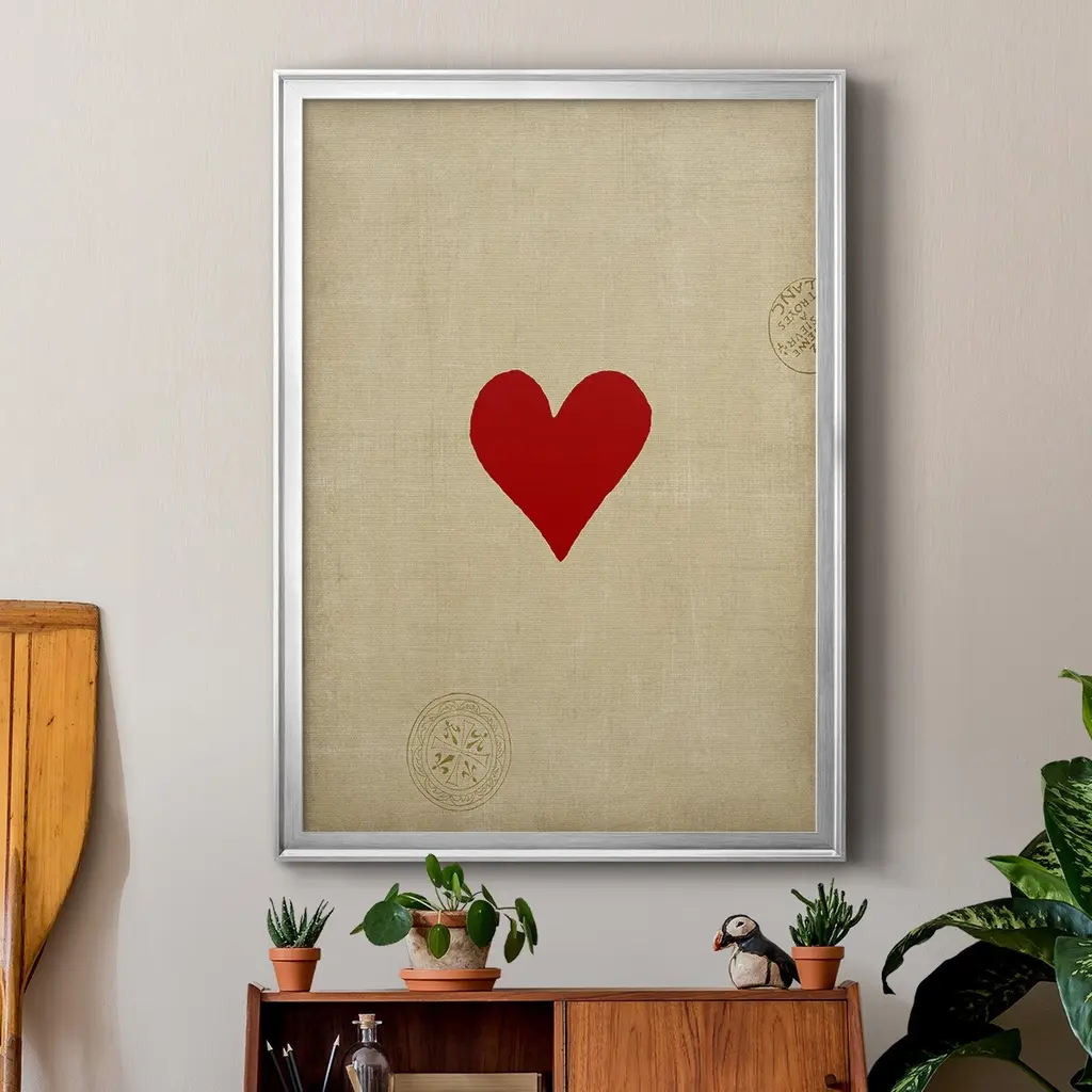 Small Heart Premium Framed Print - Ready to Hang A Premium Framed Print created to last. Framed in distressed wood and available in an array of sizes and colors Featuring a beveled a solid wood stretcher bar, each piece comes ready to hand 4 SIZES AVAILABLE 30.5''X42.5'' - Overall Size 26.5'X36.5'' - Overall Size 22.5''x30.5'' - Overall Size 18.5''x24.5'' - Overall Size Each piece is made to order. Each piece comes with hanging hardware. Made in the USA Ready to Hang
