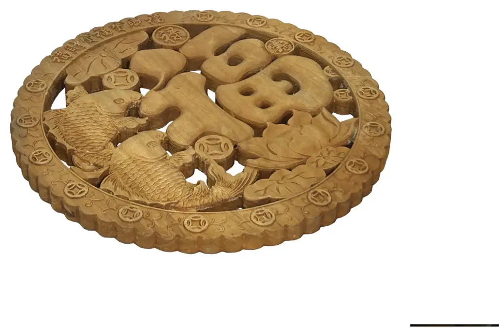 The Small Round Wave Edge Chinese Folk Character Fish Lotus Coin Motif Wood Wall Panel Plaque is a captivating piece of decor that exudes traditional charm and cultural significance. Crafted with meticulous attention to detail, this wooden plaque features a circular design with wave-like edges, reminiscent of traditional Chinese motifs.At the center of the plaque, a beautifully carved folk character adds depth and meaning, symbolizing elements of Chinese culture such as prosperity, luck, or happiness, depending on the specific character depicted. Surrounding the character are intricately carved fish and lotus motifs, each carrying its own symbolic significance in Chinese culture. Fish often represent abundance and wealth, while lotus flowers symbolize purity, enlightenment, and perseverance.Adding to the allure of this piece are coin motifs scattered throughout the design, symbolizing wealth and prosperity. The combination of these elements creates a harmonious composition that not only delights the eye but also carries profound cultural meaning.This wall panel plaque serves as more than just a decorative accent; it is a testament to the rich heritage and symbolism deeply rooted in Chinese tradition. Whether displayed in a home, office, or cultural institution, it serves as a reminder of the enduring beauty and significance of Chinese art and culture.Dimensions: Dia 10.5" thickness 0.5"Origin: ChinaMaterial: WoodCondition: Natural wood imperfection and marksWork : No Assembly is requiredFor all USA domestic continental customers (from 48 states), there is a flat shipping fee of $20, which includes insurance and handling charges. (Additional shipping charges apply to buyers from Hawaii, Alaska, US Islands, Florida Keywest, and Canada). If you are in the San Francisco Bay Area, we warmly encourage you to take advantage of our convenient in-store pick-up option at no extra cost. Please keep all original packing material and box if damage happens.