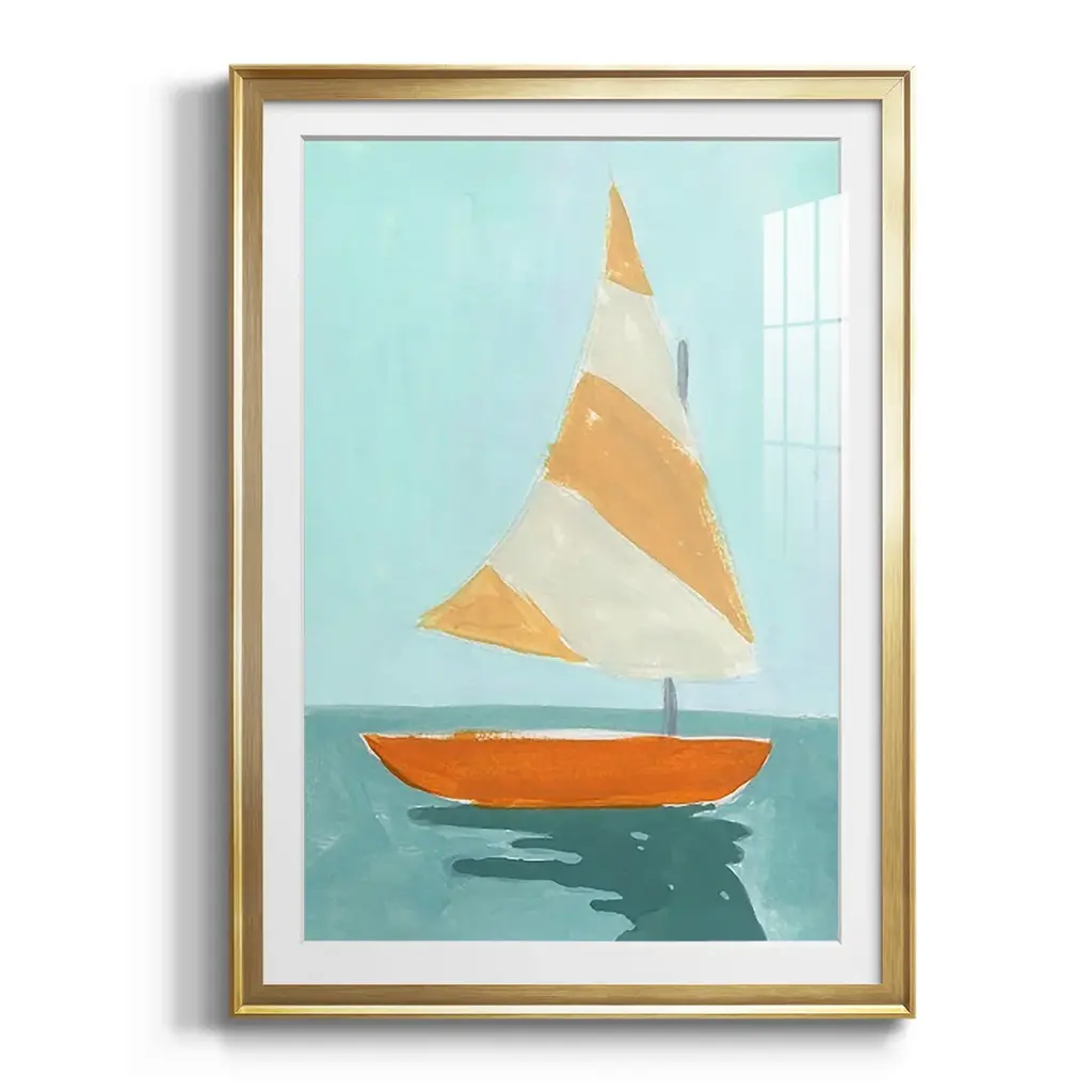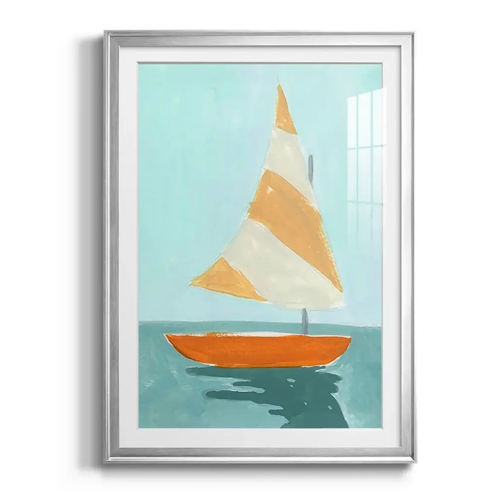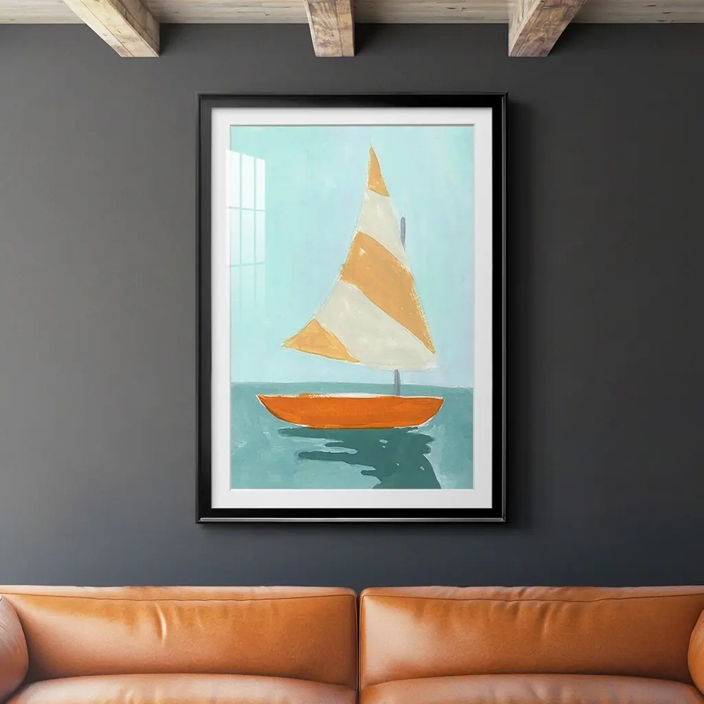 Small Sail I Premium Framed Print - Ready to Hang A Premium Framed Print created to last. Framed in distressed wood and available in an array of sizes and colors Featuring a beveled a solid wood stretcher bar, each piece comes ready to hand 4 SIZES AVAILABLE 30.5''X42.5'' - Overall Size 26.5'X36.5'' - Overall Size 22.5''x30.5'' - Overall Size 18.5''x24.5'' - Overall Size Each piece is made to order. Each piece comes with hanging hardware. Made in the USA Ready to Hang Giclee Paper Print Acrylic Glass Beveled Matt Board