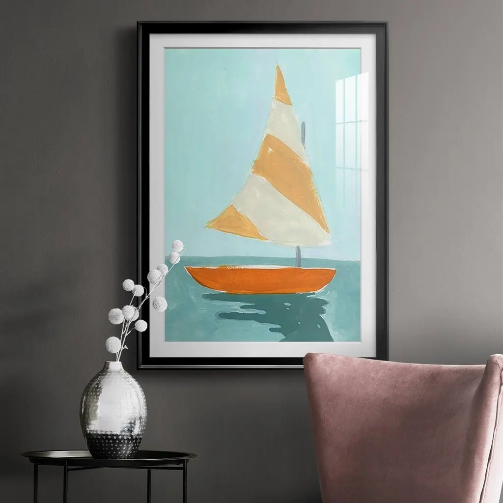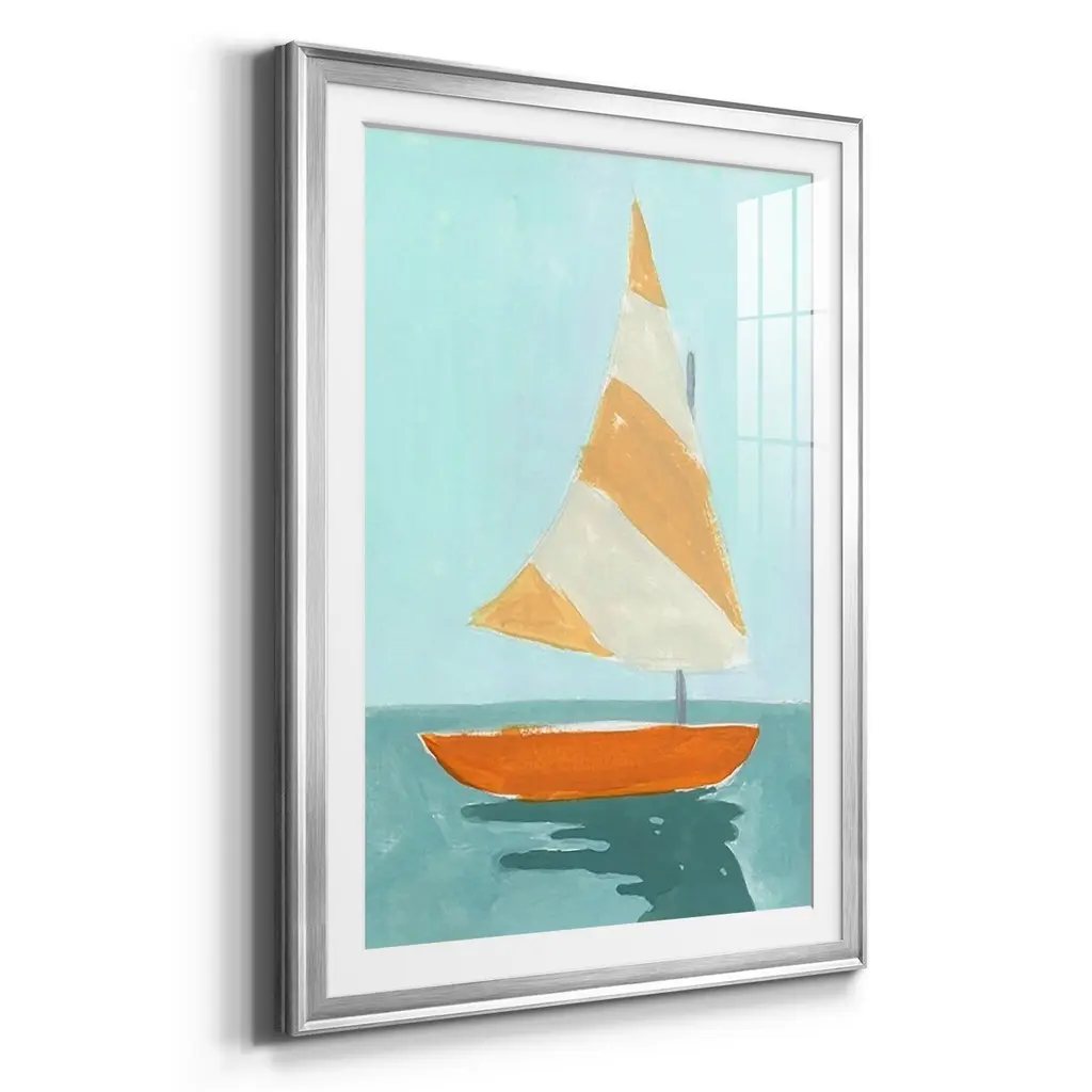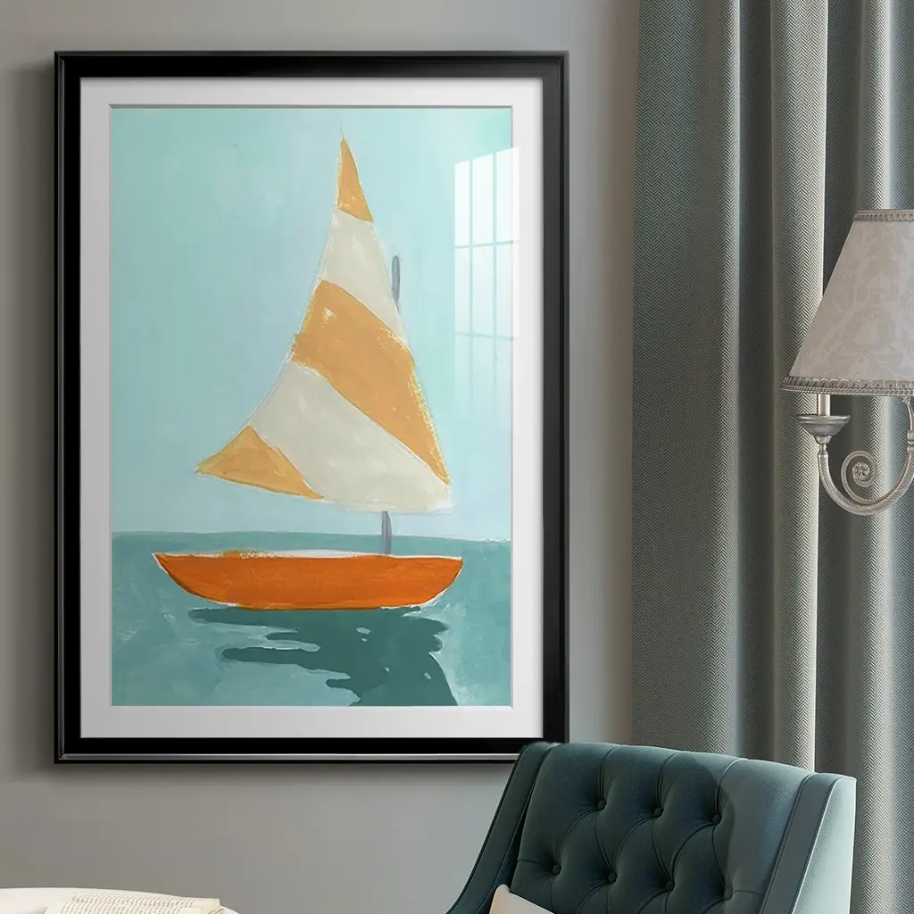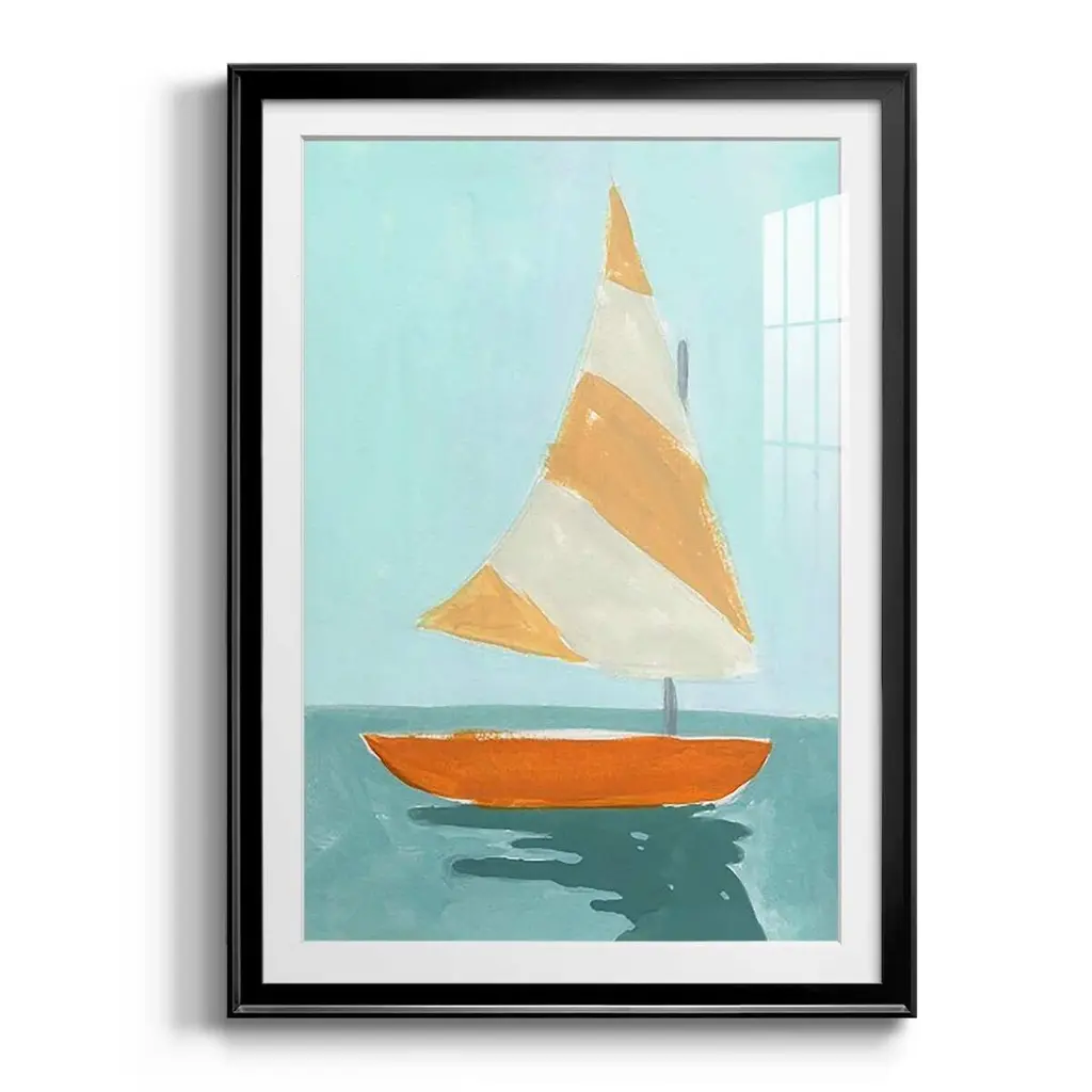 Small Sail I Premium Framed Print - Ready to Hang A Premium Framed Print created to last. Framed in distressed wood and available in an array of sizes and colors Featuring a beveled a solid wood stretcher bar, each piece comes ready to hand 4 SIZES AVAILABLE 30.5''X42.5'' - Overall Size 26.5'X36.5'' - Overall Size 22.5''x30.5'' - Overall Size 18.5''x24.5'' - Overall Size Each piece is made to order. Each piece comes with hanging hardware. Made in the USA Ready to Hang Giclee Paper Print Acrylic Glass Beveled Matt Board