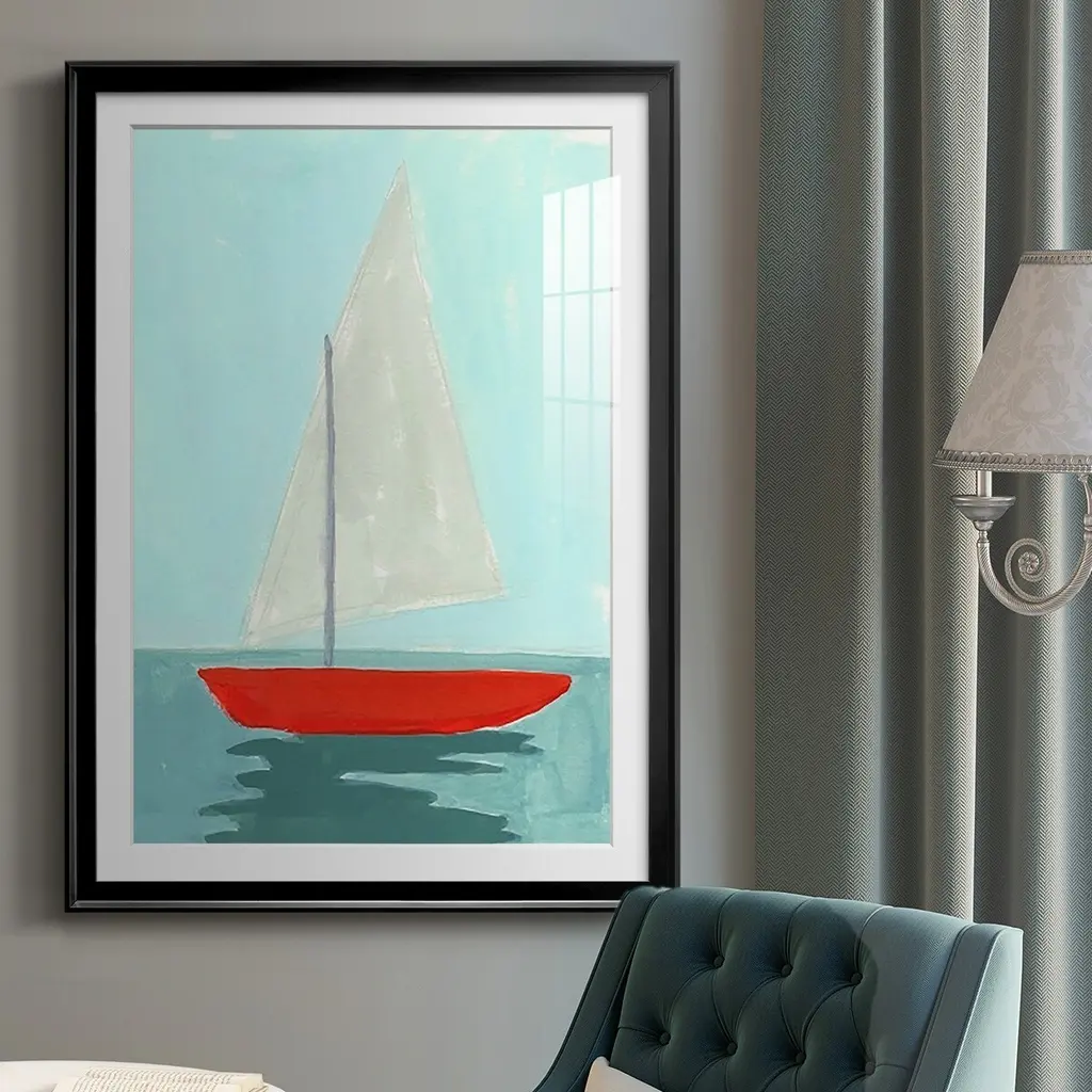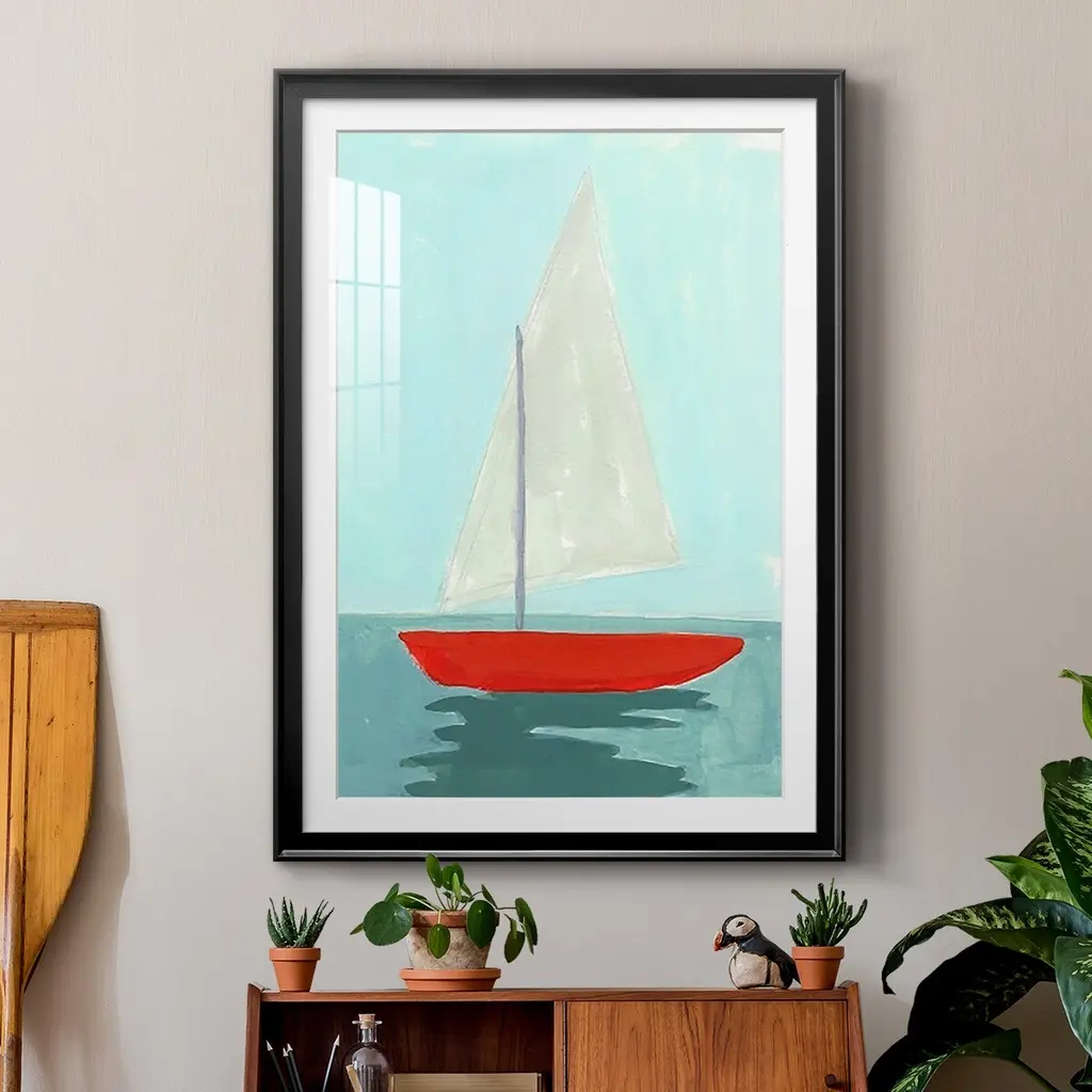Small Sail II Premium Framed Print - Ready to Hang A Premium Framed Print created to last. Framed in distressed wood and available in an array of sizes and colors Featuring a beveled a solid wood stretcher bar, each piece comes ready to hand 4 SIZES AVAILABLE 30.5''X42.5'' - Overall Size 26.5'X36.5'' - Overall Size 22.5''x30.5'' - Overall Size 18.5''x24.5'' - Overall Size Each piece is made to order. Each piece comes with hanging hardware. Made in the USA Ready to Hang Giclee Paper Print Acrylic Glass Beveled Matt Board