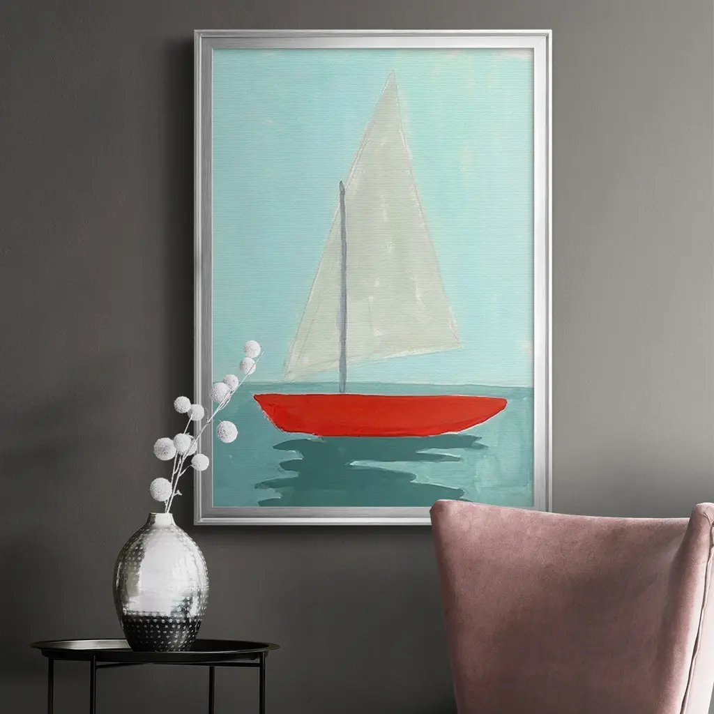 Small Sail II Premium Framed Print - Ready to Hang A Premium Framed Print created to last. Framed in distressed wood and available in an array of sizes and colors Featuring a beveled a solid wood stretcher bar, each piece comes ready to hand 4 SIZES AVAILABLE 30.5''X42.5'' - Overall Size 26.5'X36.5'' - Overall Size 22.5''x30.5'' - Overall Size 18.5''x24.5'' - Overall Size Each piece is made to order. Each piece comes with hanging hardware. Made in the USA Ready to Hang
