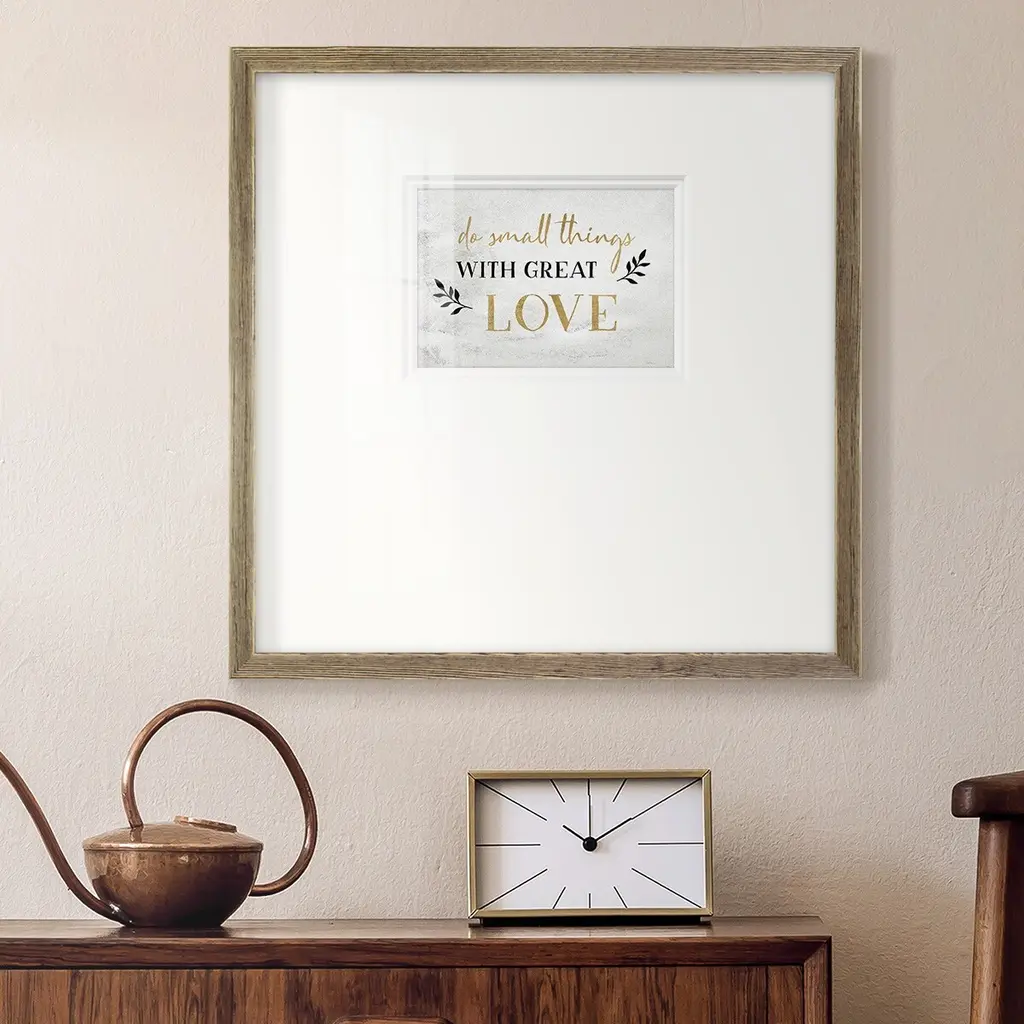 Small Things GoldPremium Framed Print A framed cold pressed paper print featuring superior double matting and quality frame. 2 SIZES AVAILABLE 16''X16''' - Overall Size 20''X20''' - Overall Size Each piece is made to order. Each piece comes with hanging hardware. Made in the USA Ready to Hang Giclee Paper Print Plexiglass Beveled Matt Board Double Matte Board