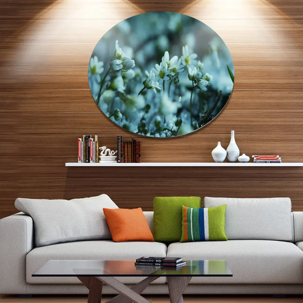Small White Flowers On Blue Background, Flower Round Wall Art, 23"