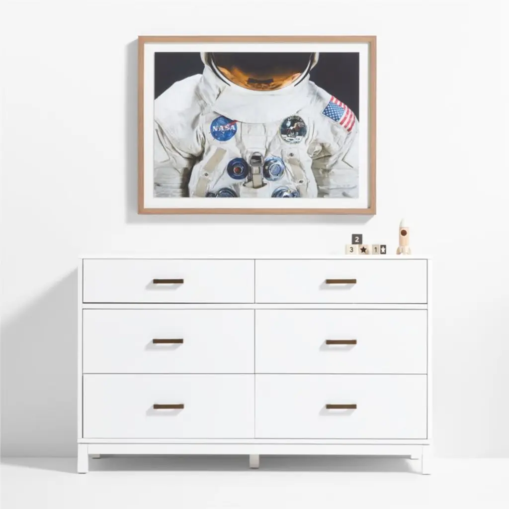 One small step for man, one giant leap for kids' rooms: This photo depicts an actual pressure suit worn by the now-famous crew of Apollo 11. On July 16, 1969, the astronauts landed on the Moon as 650 million people tuned in to their TVs back on Earth. The nostalgic giclee print brings the thrill of that voyage to your own little explorer's space.Explore, dream and play: Our out-of-this-world collaboration with the Smithsonian is designed to ignite the imaginations of a new generation of explorers.
