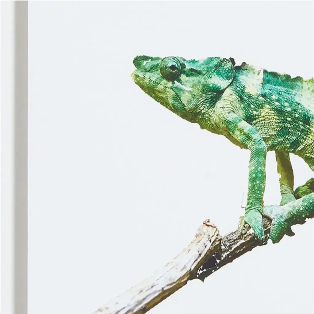 A slithering fun time: Complete their bedroom or playroom with our fierce yet friendly reptile print. The amazing Meller's chameleonwhich can see in two directions at once and change colors with its moodis captured in vivid detail in this framed giclee print. Its distinctive form and hue pop against the white backdrop. The chameleon has a lightning-quick tongue that can stretch out to snatch prey up to 20 inches awaythat's half the length of the chameleon's body!Explore, dream and play: Our out-of-this-world collaboration with the Smithsonian is designed to ignite the imaginations of a new generation of explorers.