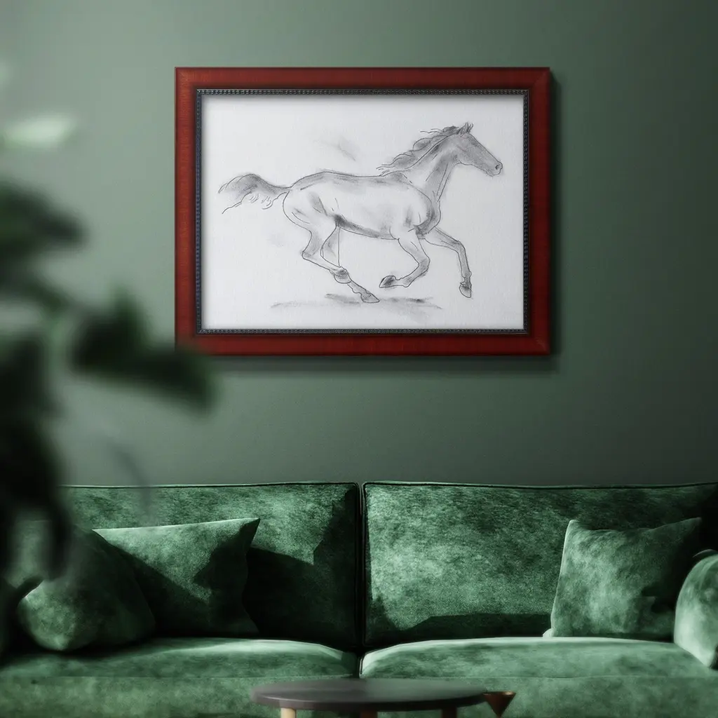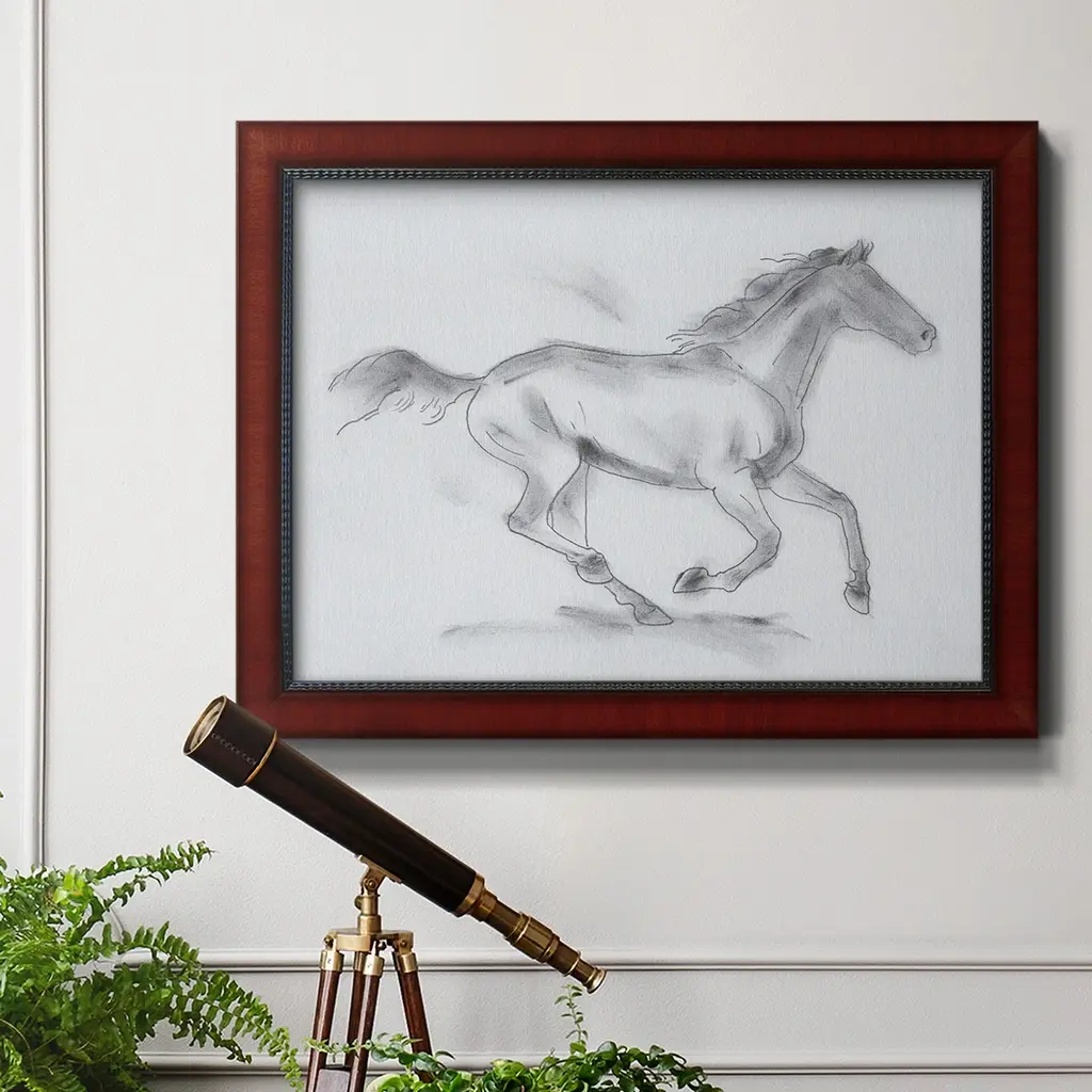 Smoke Stallion I Premium Framed Canvas- Ready to Hang A Premium Framed Canvas created to last. Framed in distressed wood and available in an array of sizes and colors Featuring a beveled a solid wood stretcher bar, each piece comes ready to hand 3 SIZES AVAILABLE 16''X20'' - Overall Size 18'X27'' - Overall Size 24''x36'' - Overall Size Each piece is made to order. Each piece comes with hanging hardware. Made in the USA Ready to Hang Giclee Paper Print Acrylic Glass Beveled Matt Board
