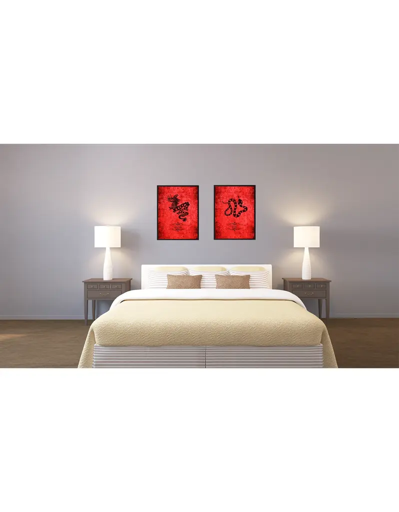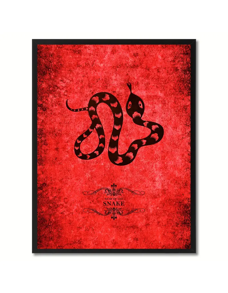 Snake Chinese Zodiac Red Print On Canvas With Picture Frame, 28"x37"