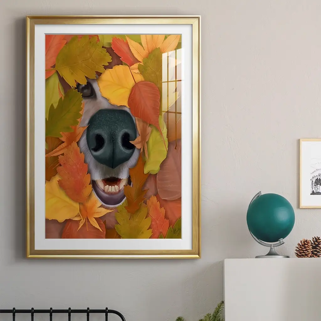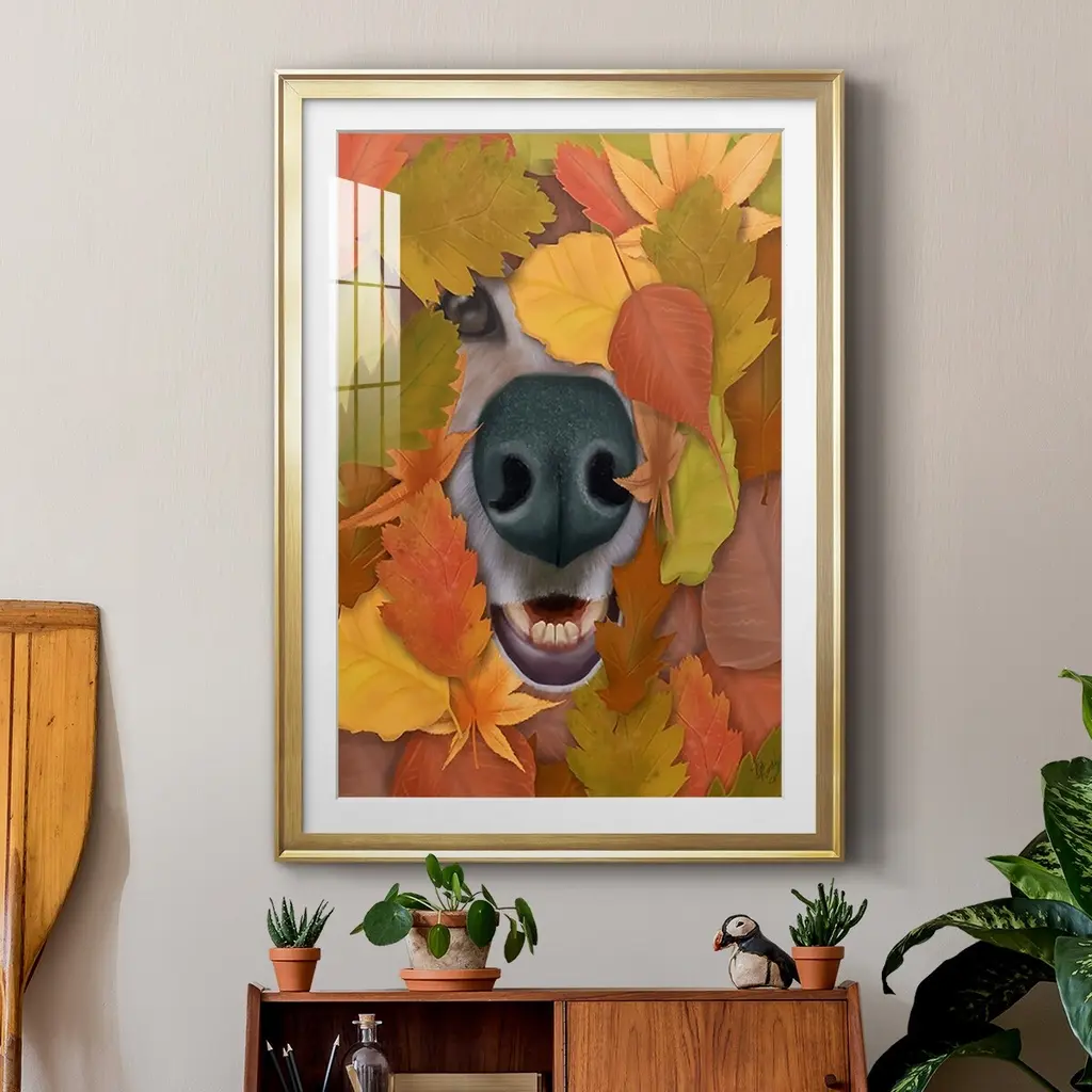 Sniffing Out Autumn Premium Framed Print - Ready to Hang A Premium Framed Print created to last. Framed in distressed wood and available in an array of sizes and colors Featuring a beveled a solid wood stretcher bar, each piece comes ready to hand 4 SIZES AVAILABLE 30.5''X42.5'' - Overall Size 26.5'X36.5'' - Overall Size 22.5''x30.5'' - Overall Size 18.5''x24.5'' - Overall Size Each piece is made to order. Each piece comes with hanging hardware. Made in the USA Ready to Hang Giclee Paper Print Acrylic Glass Beveled Matt Board