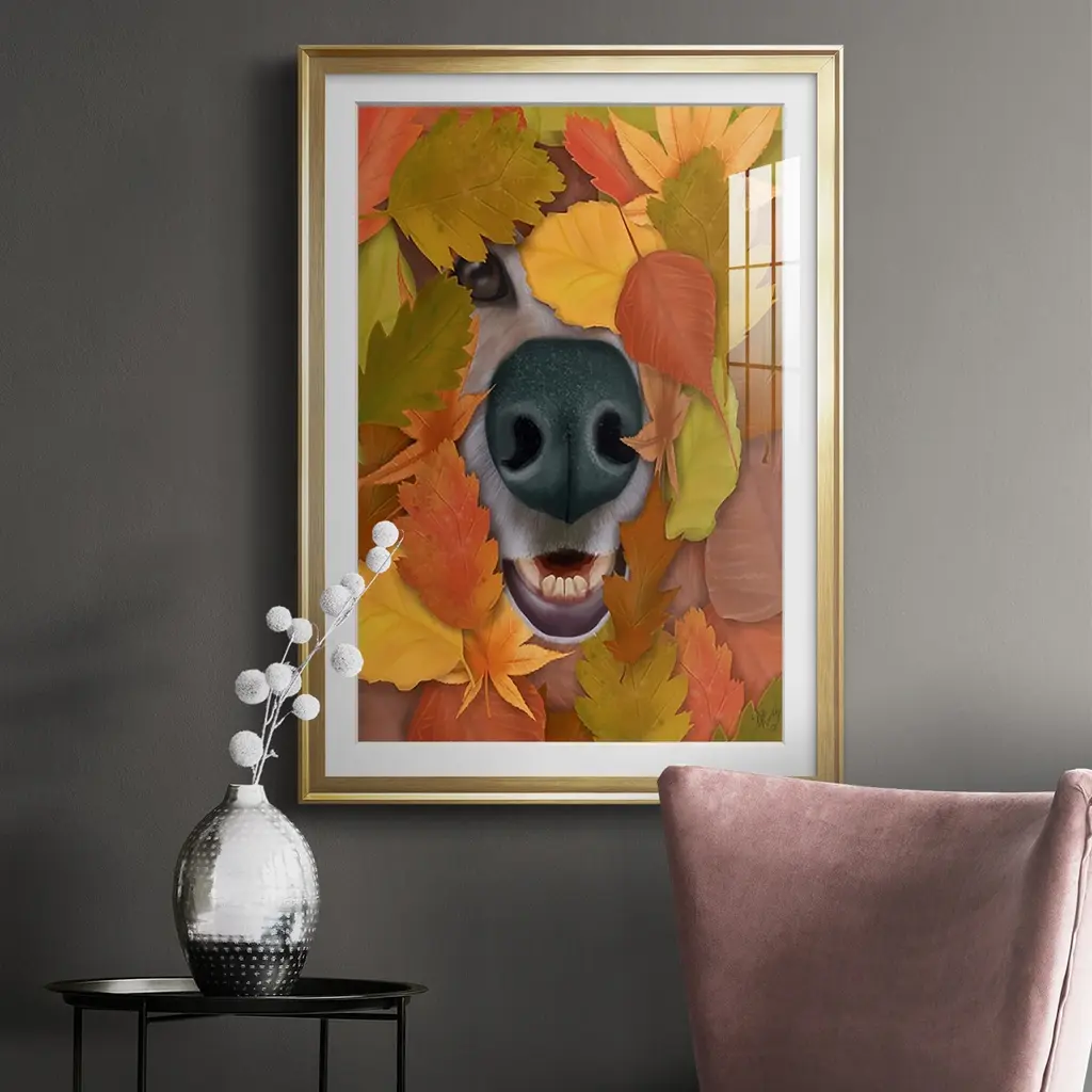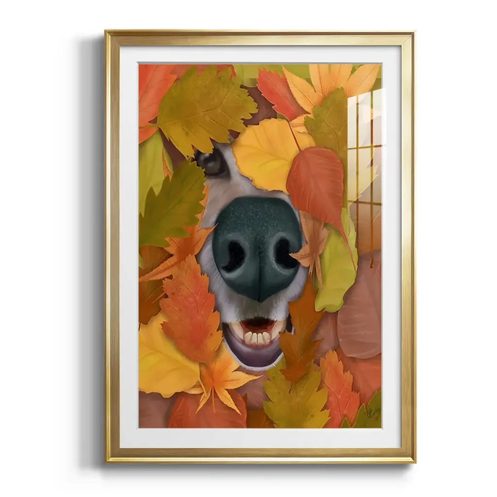 Sniffing Out Autumn Premium Framed Print - Ready to Hang A Premium Framed Print created to last. Framed in distressed wood and available in an array of sizes and colors Featuring a beveled a solid wood stretcher bar, each piece comes ready to hand 4 SIZES AVAILABLE 30.5''X42.5'' - Overall Size 26.5'X36.5'' - Overall Size 22.5''x30.5'' - Overall Size 18.5''x24.5'' - Overall Size Each piece is made to order. Each piece comes with hanging hardware. Made in the USA Ready to Hang Giclee Paper Print Acrylic Glass Beveled Matt Board