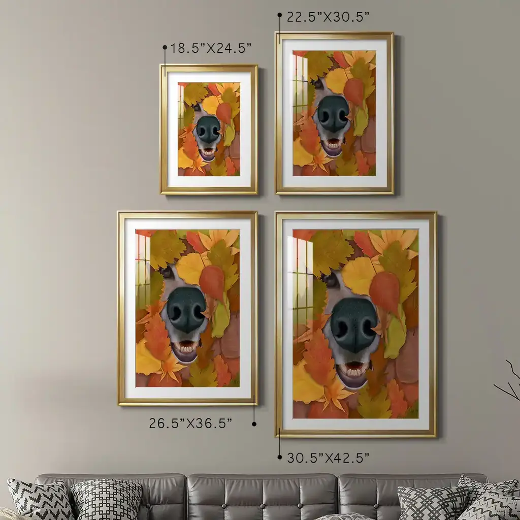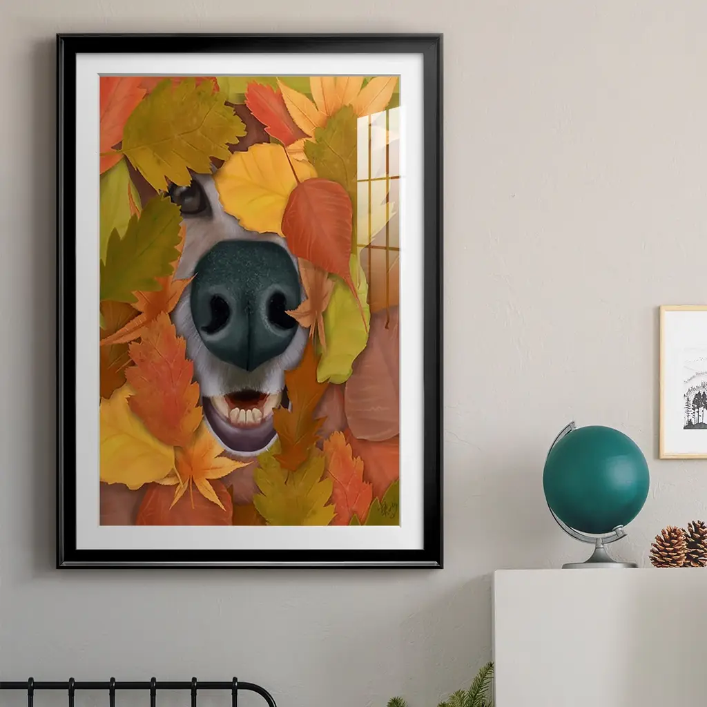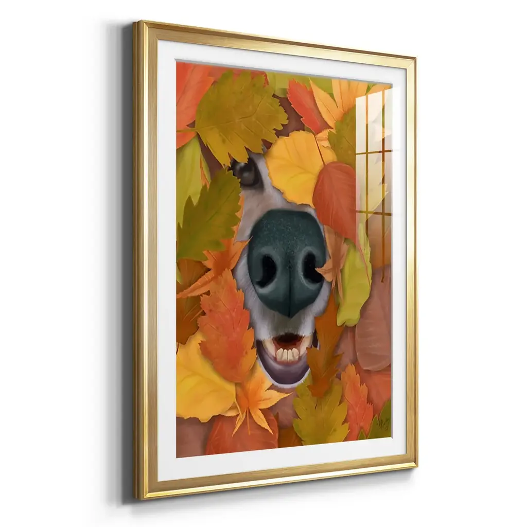 Sniffing Out Autumn Premium Framed Print - Ready to Hang A Premium Framed Print created to last. Framed in distressed wood and available in an array of sizes and colors Featuring a beveled a solid wood stretcher bar, each piece comes ready to hand 4 SIZES AVAILABLE 30.5''X42.5'' - Overall Size 26.5'X36.5'' - Overall Size 22.5''x30.5'' - Overall Size 18.5''x24.5'' - Overall Size Each piece is made to order. Each piece comes with hanging hardware. Made in the USA Ready to Hang Giclee Paper Print Acrylic Glass Beveled Matt Board