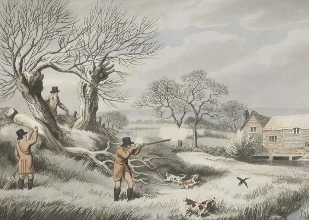This giclée reproduction of "Snipe Shooting" remastered by CFA Editions, is from one of the most esteemed collections of hunting scenes ever published. The original work is part of Orme's Collection of British Field Sports, a landmark in sporting art, featuring twenty exquisitely hand-colored engravings based on designs by the celebrated artist Samuel Howitt. Published by Edward Orme of London between 1807 and 1808, this series showcases vibrant scenes of hunting, shooting, and racing. Howitt, renowned for his depictions of wildlife, hunting, and equestrian subjects, collaborated with five master engravers to bring these dynamic scenes to life. What sets this collection apart is its use of the aquatint technique, a method highly favored by English printmakers of the late 18th and early 19th centuries. Aquatint's ability to mimic the delicate tones of watercolor made it perfect for capturing the vibrancy and detail of field sports. Due to the quality, subject matter, and craftsmanship, these prints are highly sought after by collectors of fine sporting art. 24 x 30 inches
