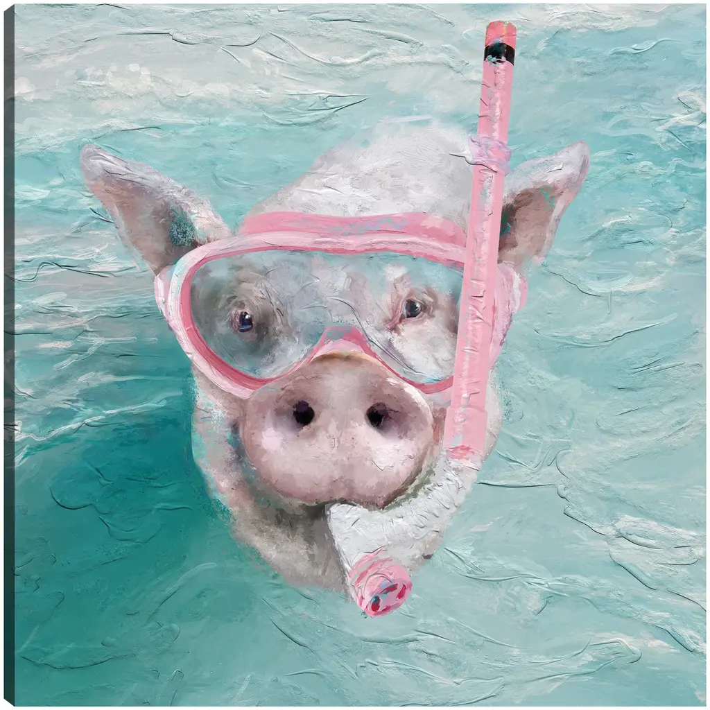 Snorkle Pig By Studio Arts Canvas Art Print - 20x20