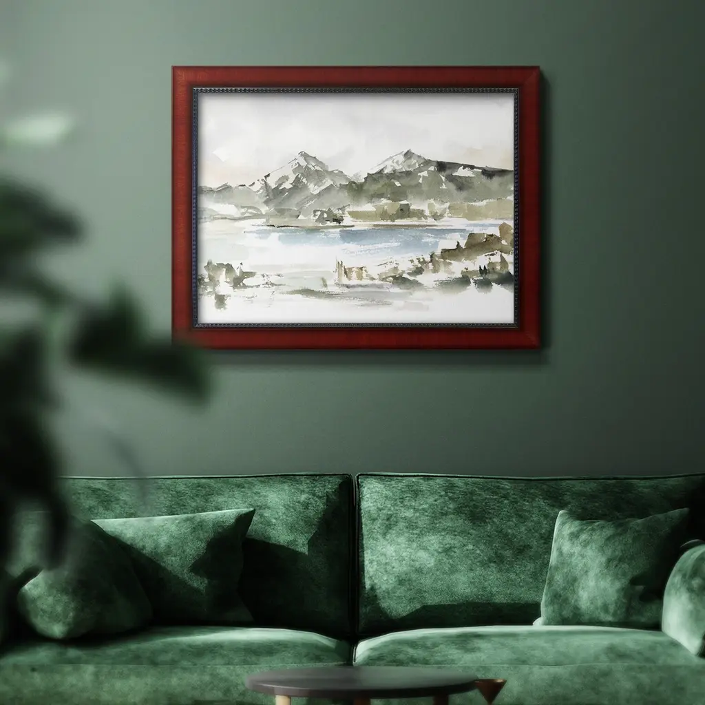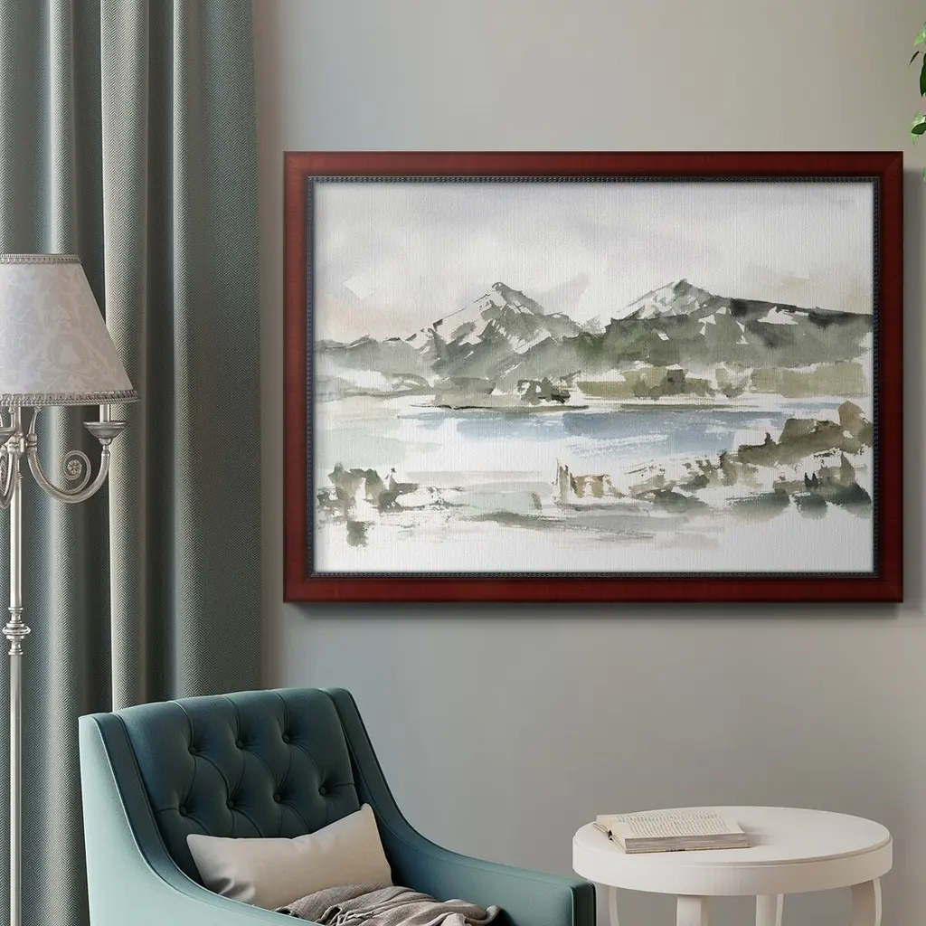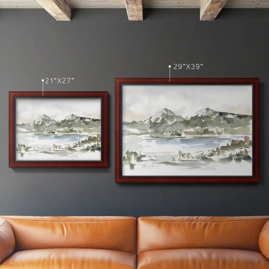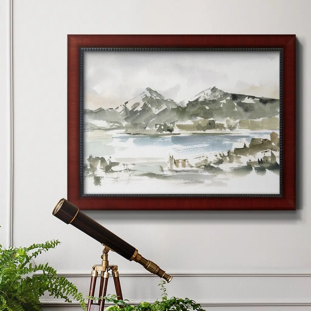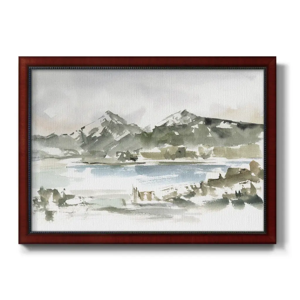 Snow-capped Mountain Study I Premium Framed Canvas- Ready to Hang A Premium Framed Canvas created to last. Framed in distressed wood and available in an array of sizes and colors Featuring a beveled a solid wood stretcher bar, each piece comes ready to hand 3 SIZES AVAILABLE 16''X20'' - Overall Size 18'X27'' - Overall Size 24''x36'' - Overall Size Each piece is made to order. Each piece comes with hanging hardware. Made in the USA Ready to Hang Giclee Paper Print Acrylic Glass Beveled Matt Board