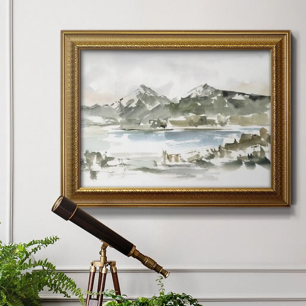 Snow-capped Mountain Study I Premium Framed Canvas- Ready to Hang A Premium Framed Canvas created to last. Framed in distressed wood and available in an array of sizes and colors Featuring a beveled a solid wood stretcher bar, each piece comes ready to hand 3 SIZES AVAILABLE 16''X20'' - Overall Size 18'X27'' - Overall Size 24''x36'' - Overall Size Each piece is made to order. Each piece comes with hanging hardware. Made in the USA Ready to Hang Giclee Paper Print Acrylic Glass Beveled Matt Board