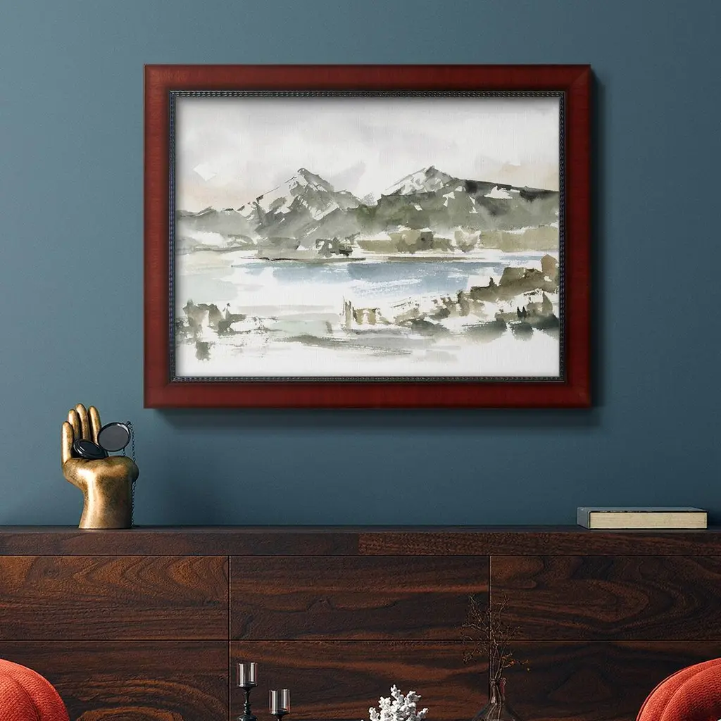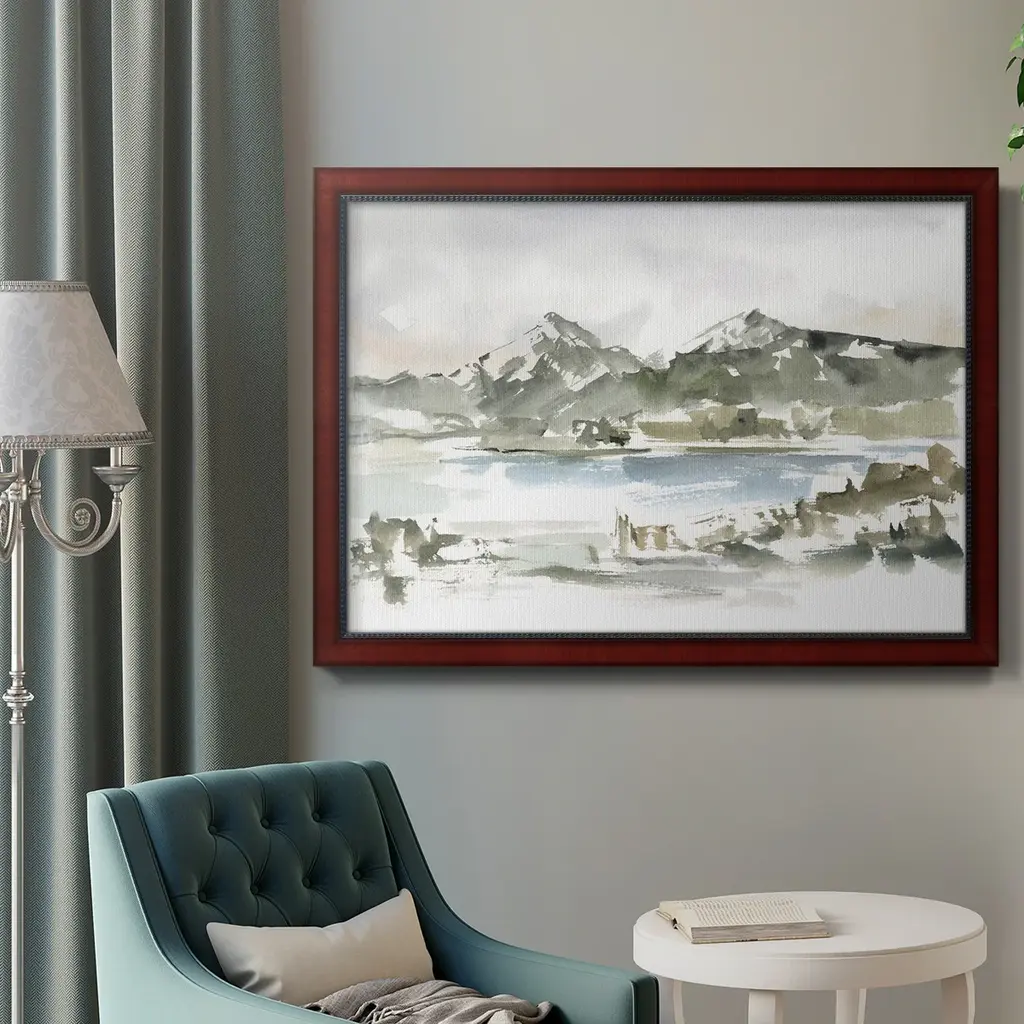 Snow-capped Mountain Study I Premium Framed Canvas- Ready to Hang A Premium Framed Canvas created to last. Framed in distressed wood and available in an array of sizes and colors Featuring a beveled a solid wood stretcher bar, each piece comes ready to hand 3 SIZES AVAILABLE 16''X20'' - Overall Size 18'X27'' - Overall Size 24''x36'' - Overall Size Each piece is made to order. Each piece comes with hanging hardware. Made in the USA Ready to Hang Giclee Paper Print Acrylic Glass Beveled Matt Board