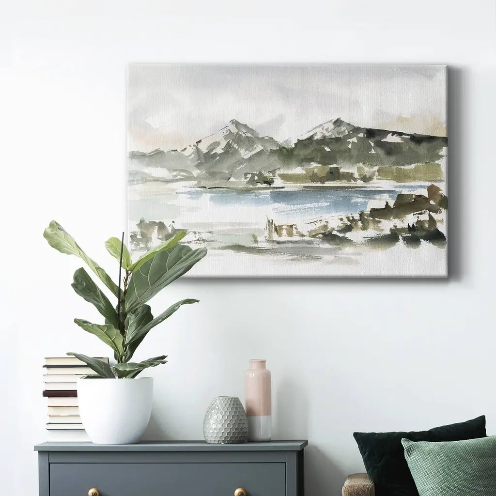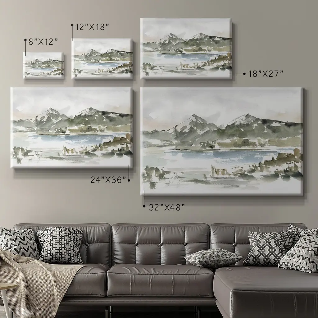Snow-capped Mountain Study I Premium Gallery Wrapped Canvas - Ready to Hang A premium hand stretched gallery wrapped canvas print created to last. Featuring a beveled a solid wood stretcher bar, each piece comes ready to hand 6 SIZES AVAILABLE 8''X12'' - Overall Size 12''X18'' - Overall Size 18''X27'' - Overall Size 24''x36'' - Overall Size 32''x48'' - Overall Size 40''x60'' - Overall Size Each piece is made to order. Built to Last Each piece comes ready to hang Solid wood stretcher Fade and Water resistant Made domestically