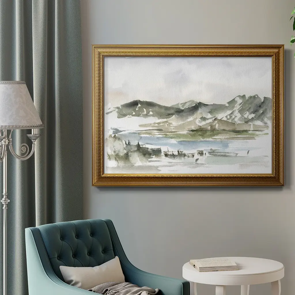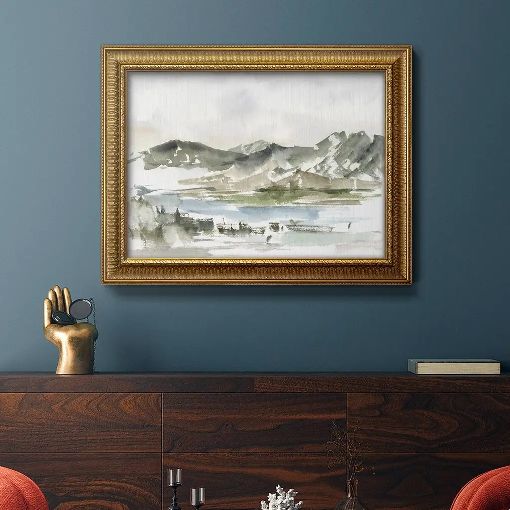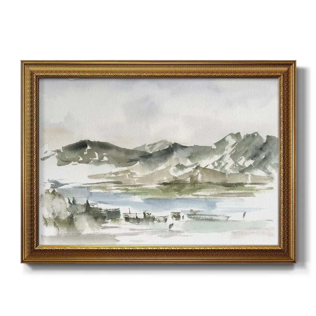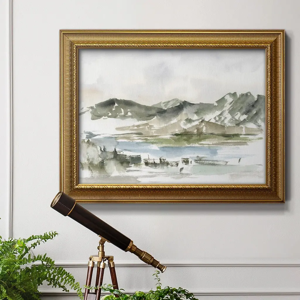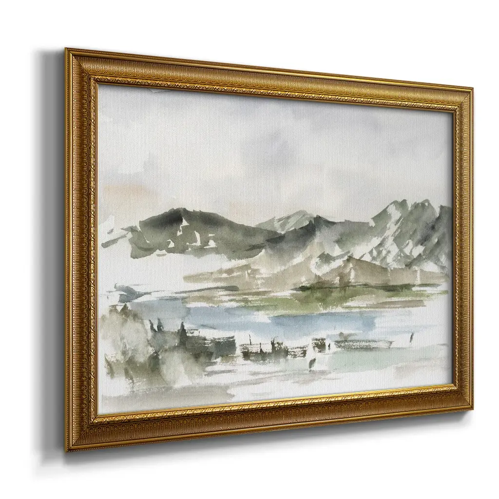 Snow-capped Mountain Study II Premium Framed Canvas- Ready to Hang A Premium Framed Canvas created to last. Framed in distressed wood and available in an array of sizes and colors Featuring a beveled a solid wood stretcher bar, each piece comes ready to hand 3 SIZES AVAILABLE 16''X20'' - Overall Size 18'X27'' - Overall Size 24''x36'' - Overall Size Each piece is made to order. Each piece comes with hanging hardware. Made in the USA Ready to Hang Giclee Paper Print Acrylic Glass Beveled Matt Board