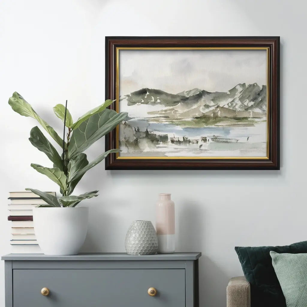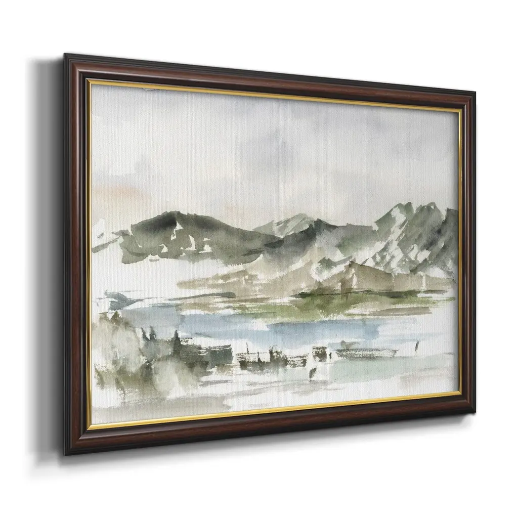 Snow-capped Mountain Study II Premium Framed Canvas- Ready to Hang A Premium Framed Canvas created to last. Framed in distressed wood and available in an array of sizes and colors Featuring a beveled a solid wood stretcher bar, each piece comes ready to hand 3 SIZES AVAILABLE 16''X20'' - Overall Size 18'X27'' - Overall Size 24''x36'' - Overall Size Each piece is made to order. Each piece comes with hanging hardware. Made in the USA Ready to Hang Giclee Paper Print Acrylic Glass Beveled Matt Board