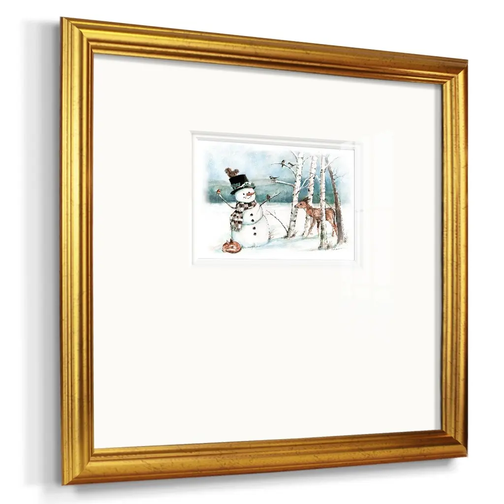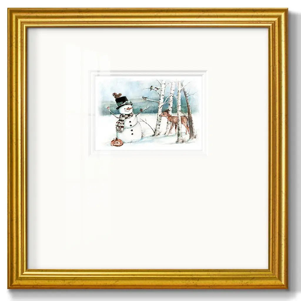 Snow FriendsPremium Framed Print A framed cold pressed paper print featuring superior double matting and quality frame. 2 SIZES AVAILABLE 16''X16''' - Overall Size 20''X20''' - Overall Size Each piece is made to order. Each piece comes with hanging hardware. Made in the USA Ready to Hang Giclee Paper Print Plexiglass Beveled Matt Board Double Matte Board