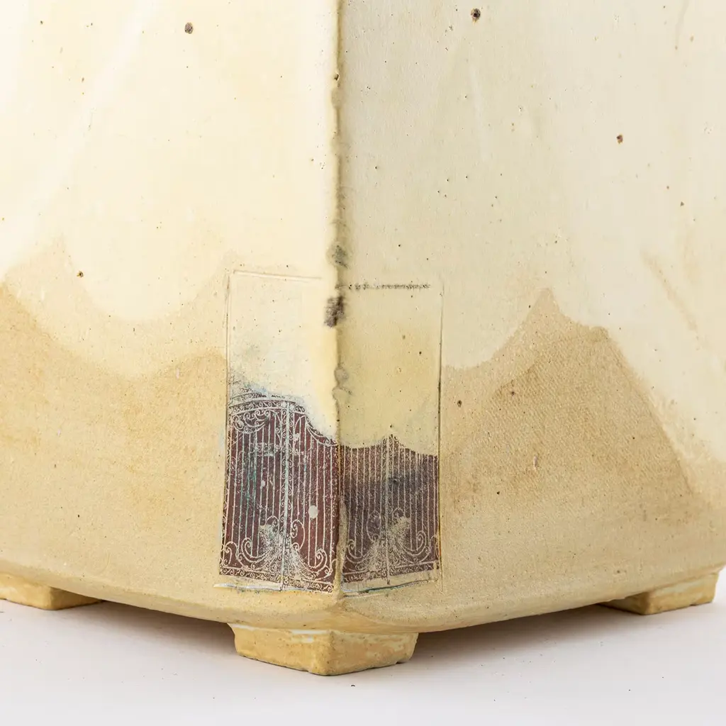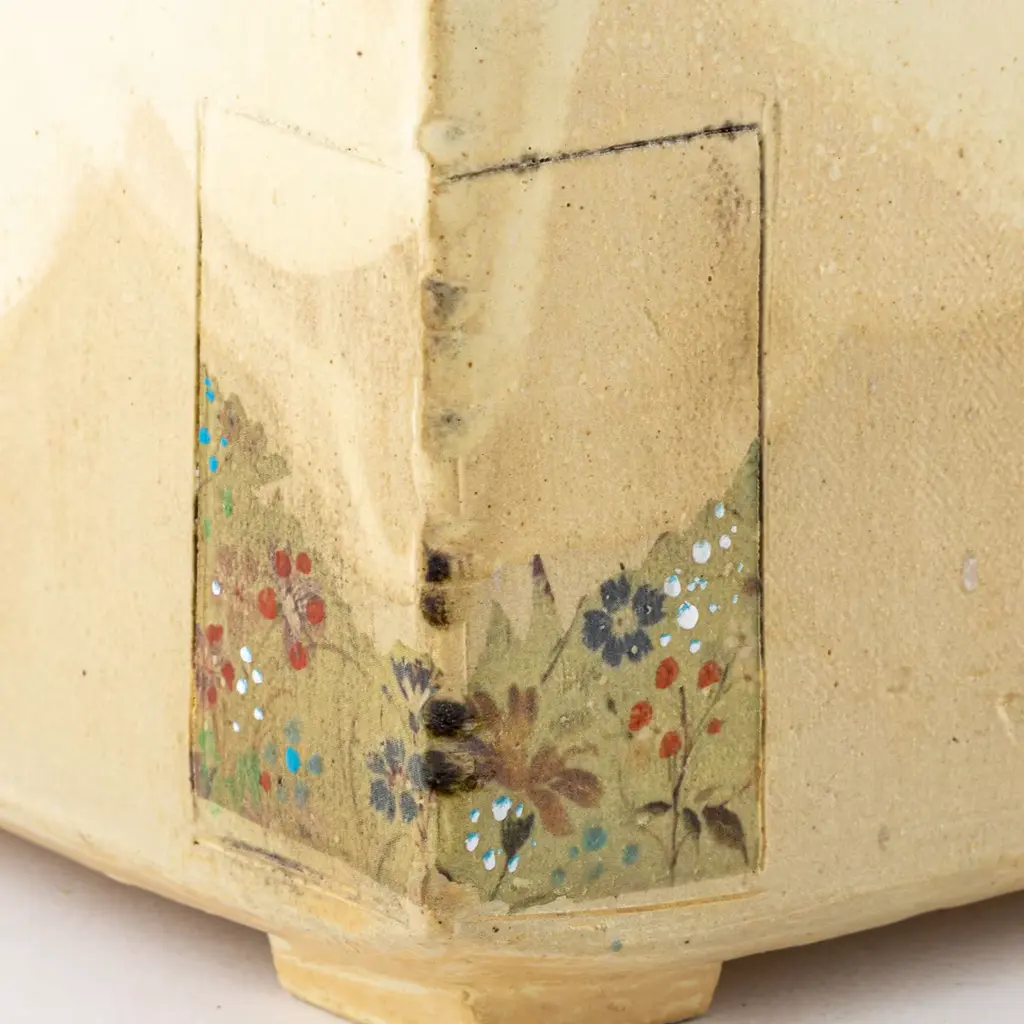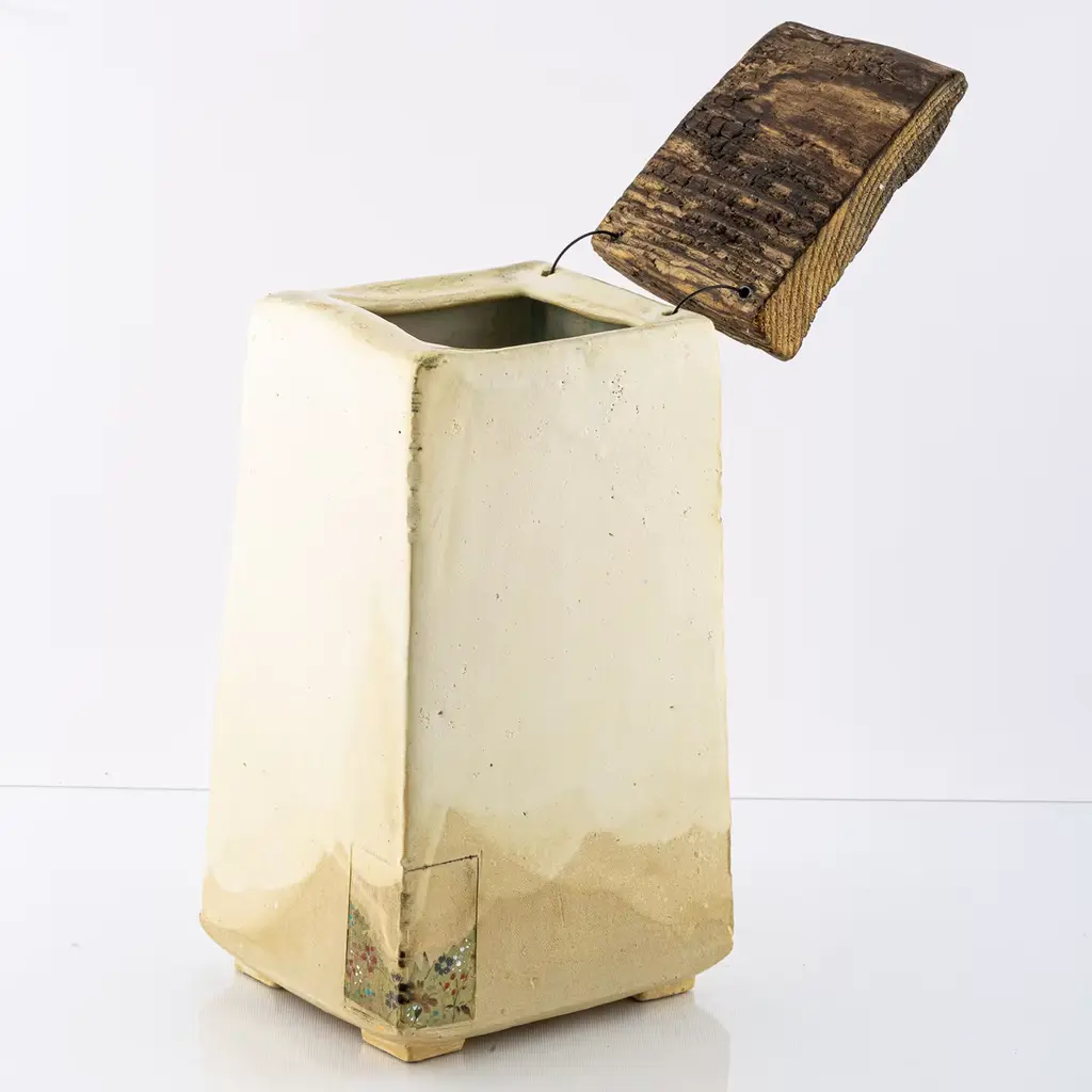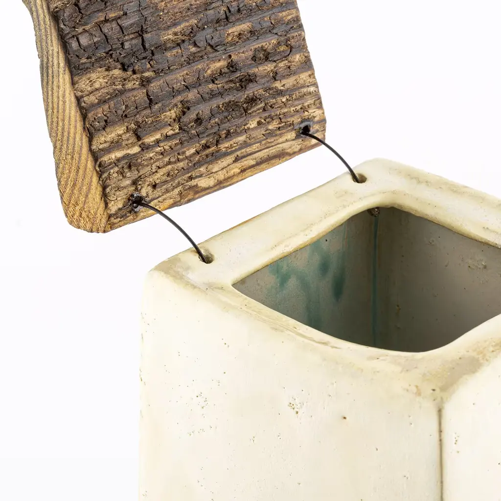 A superlative showcase of craftsmanship that celebrates the natural charm of raw materials, this splendid box with a lid will make a refined and fascinating accent on a bedroom vanity, entryway console, or living room sideboard. Fashioned of stoneware finished in a satin cream hue, it features an exquisite handmade painting depicting a small glimpse of a blooming field enriched with white snowflakes. The lid is deftly made of driftwood for a striking finishing touch.
