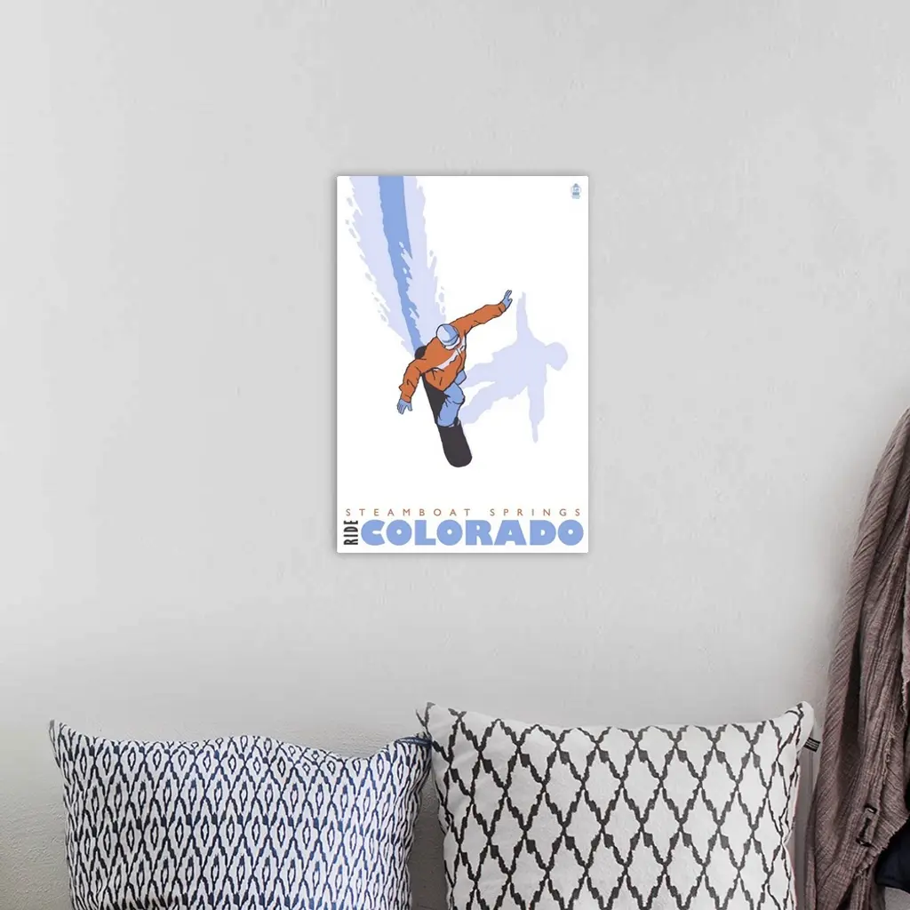 Snowboard Stylized - Steamboat, CO: Retro Travel Poster wall art for home and office decor. Discover canvas art prints, photos, mural, big canvas art and framed wall art in GreatBigCanvas.com's varied collections.