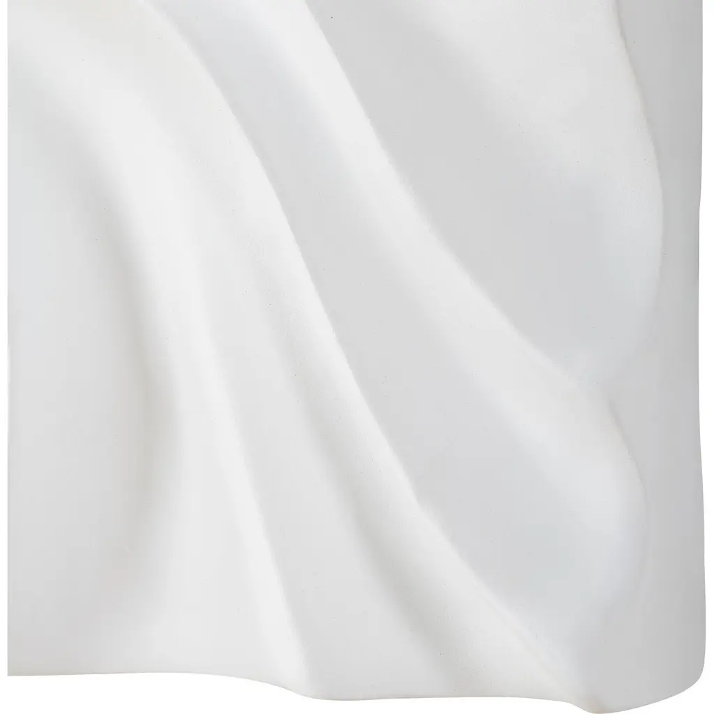 Three Dimensional Sculptural Wall Panels Crafted In Resin In Fresh White, Resembling Billowing Snow Drifts.