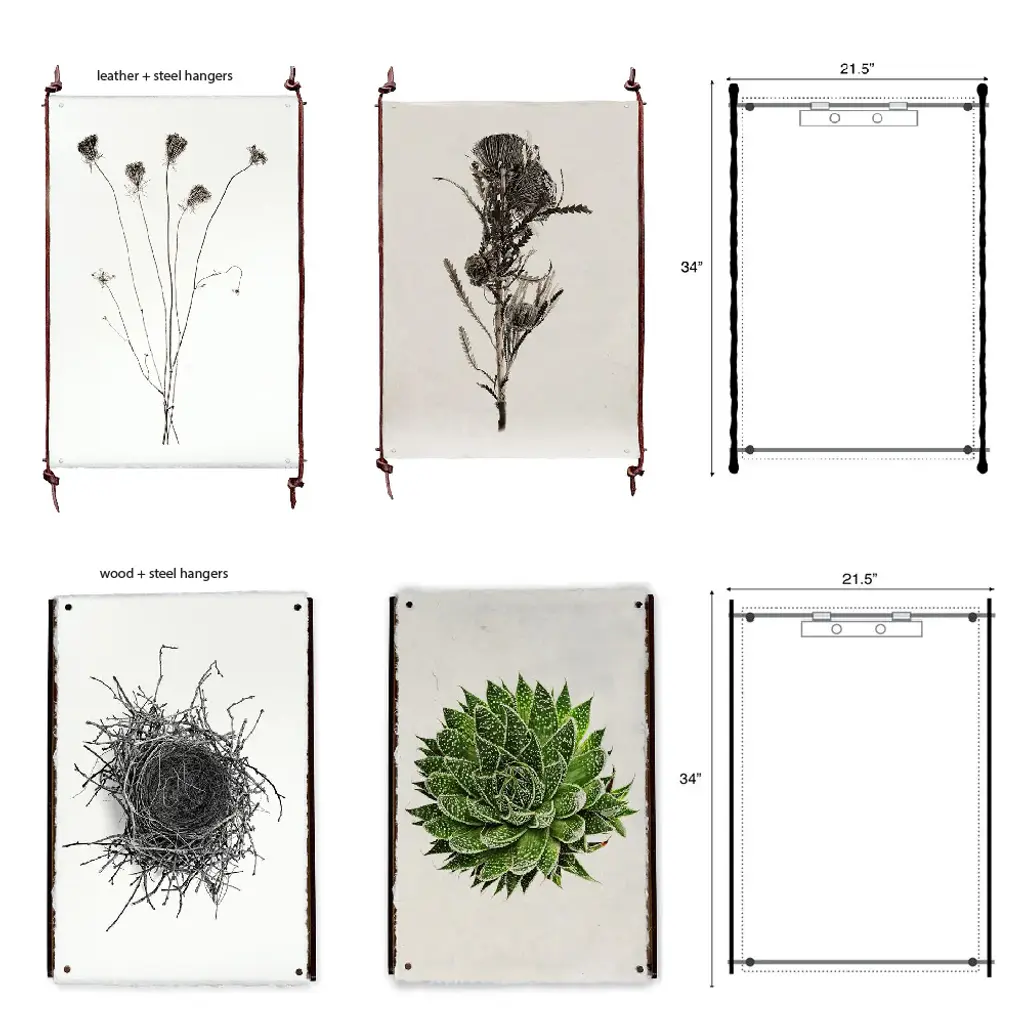 Inspired by the gossamer downy feathers and extraordinary speckled color variation , a study of Snowflake Quail Wings and its intricacies are expertly replicated. Art pieces can are unframed (print only); however, a choice of additional “frameless” hanging options are available. The added-on framing options are shipped disassembled from the artwork. Hanging kits come complete with everything needed to hang a single print, including easy instructions. No damage is done to the print upon utilizing the hangers.