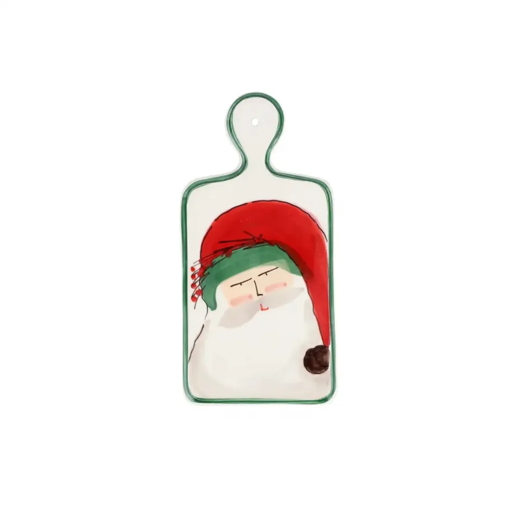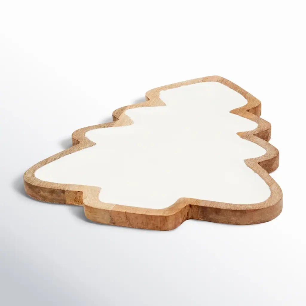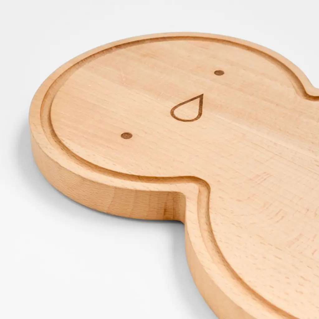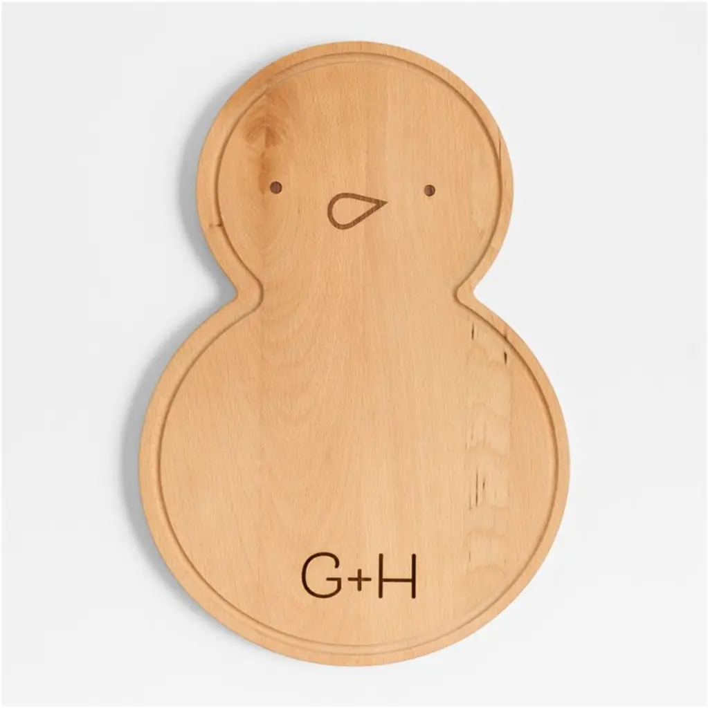 and appetizers at holiday gatherings. Etched with simple curves sketching eyes, buttons and a carrot-inspired nose, the modern and minimalist snow friend has plenty of personality. Skilled artisans finish the board by hand, crafted of sustainably sourced beechwood with a handy groove that collects crumbs or carving juices. Due to the natural material, each snowman cutting board is beautifully unique.