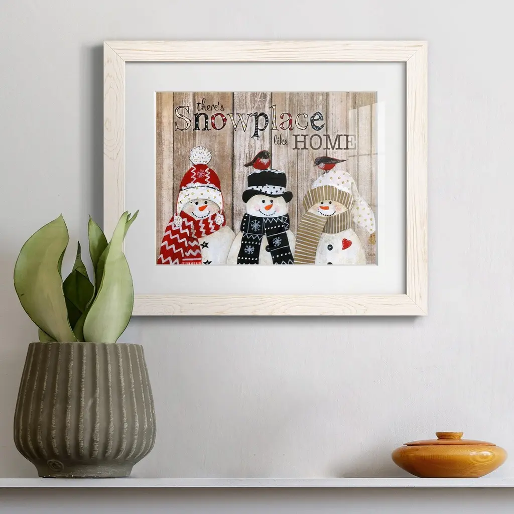 Snowplace Like Home-Premium Framed Print - Ready to Hang Framed in distressed wood and available in an array of sizes and colors Each piece is joined and assembled by hand and comes ready to hang 2 INCH BEVELED MATTE BOARD PLEXIGLASS COVERING READY TO HANG MADE IN THE USA SOLID WOOD FRAME MADE IN USA FADE RESISTANT GICLEE PRINTING on Canvas or Paper