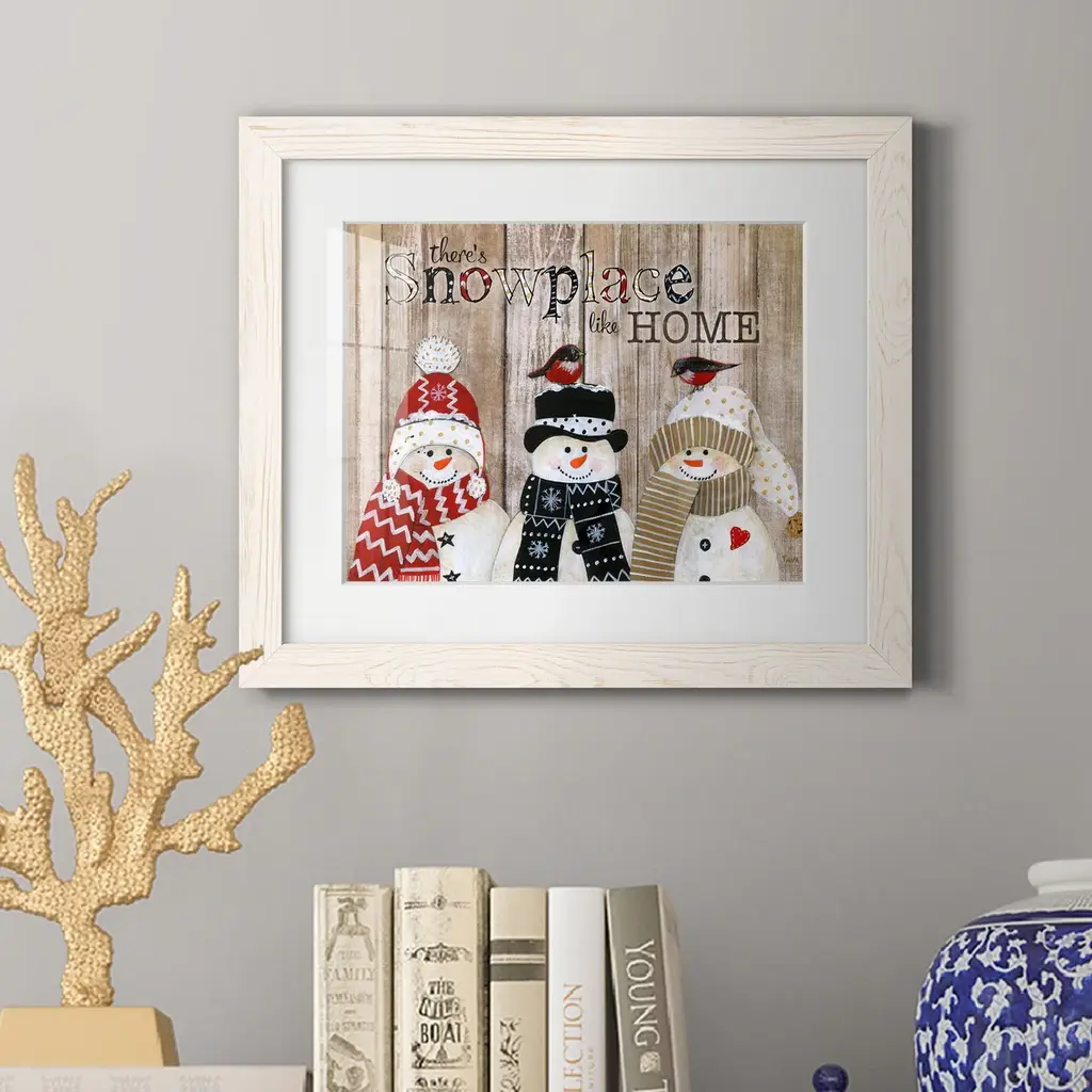 Snowplace Like Home-Premium Framed Print - Ready to Hang Framed in distressed wood and available in an array of sizes and colors Each piece is joined and assembled by hand and comes ready to hang 2 INCH BEVELED MATTE BOARD PLEXIGLASS COVERING READY TO HANG MADE IN THE USA SOLID WOOD FRAME MADE IN USA FADE RESISTANT GICLEE PRINTING on Canvas or Paper