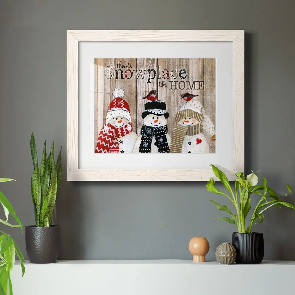Snowplace Like Home-Premium Framed Print - Ready to Hang Framed in distressed wood and available in an array of sizes and colors Each piece is joined and assembled by hand and comes ready to hang 2 INCH BEVELED MATTE BOARD PLEXIGLASS COVERING READY TO HANG MADE IN THE USA SOLID WOOD FRAME MADE IN USA FADE RESISTANT GICLEE PRINTING on Canvas or Paper