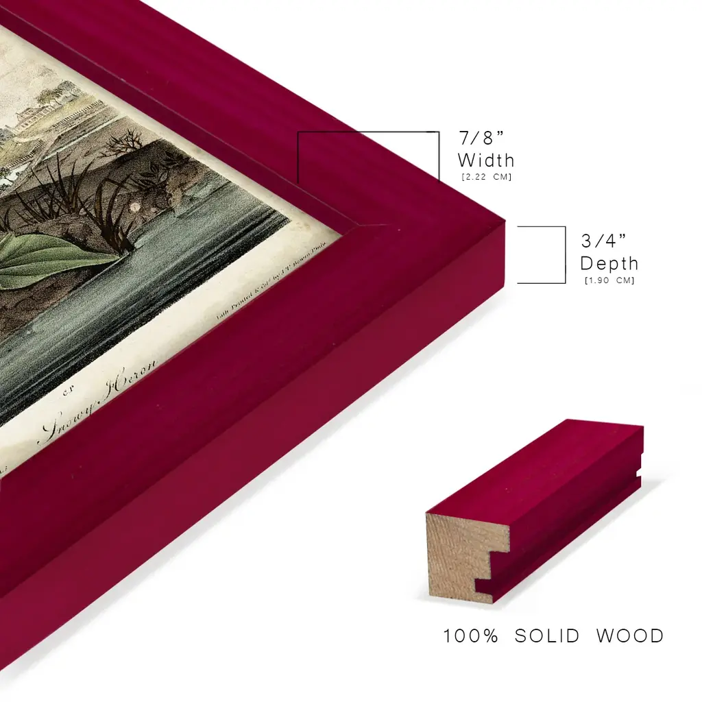 Snowy Heron -EZ SWITCH Framed Print w/glass-Cherry Red A delightful, framed print. Featuring a solid wood frame with real wood glass. This premium print is giclee quality. In addition, every frame features a removable back and table top stand. This allows you to change your art in the future or to just stand the art on a table for a new look. We are sure you'll enjoy our new series of EZ SWITCH Framed Art. Solid Wood Frame Real Glass Removable / Replaceable Art Built in Tabletop Stand Sizes range from 4x6 up to 12x15 - buy just one or pair them up as sets as you see fit.
