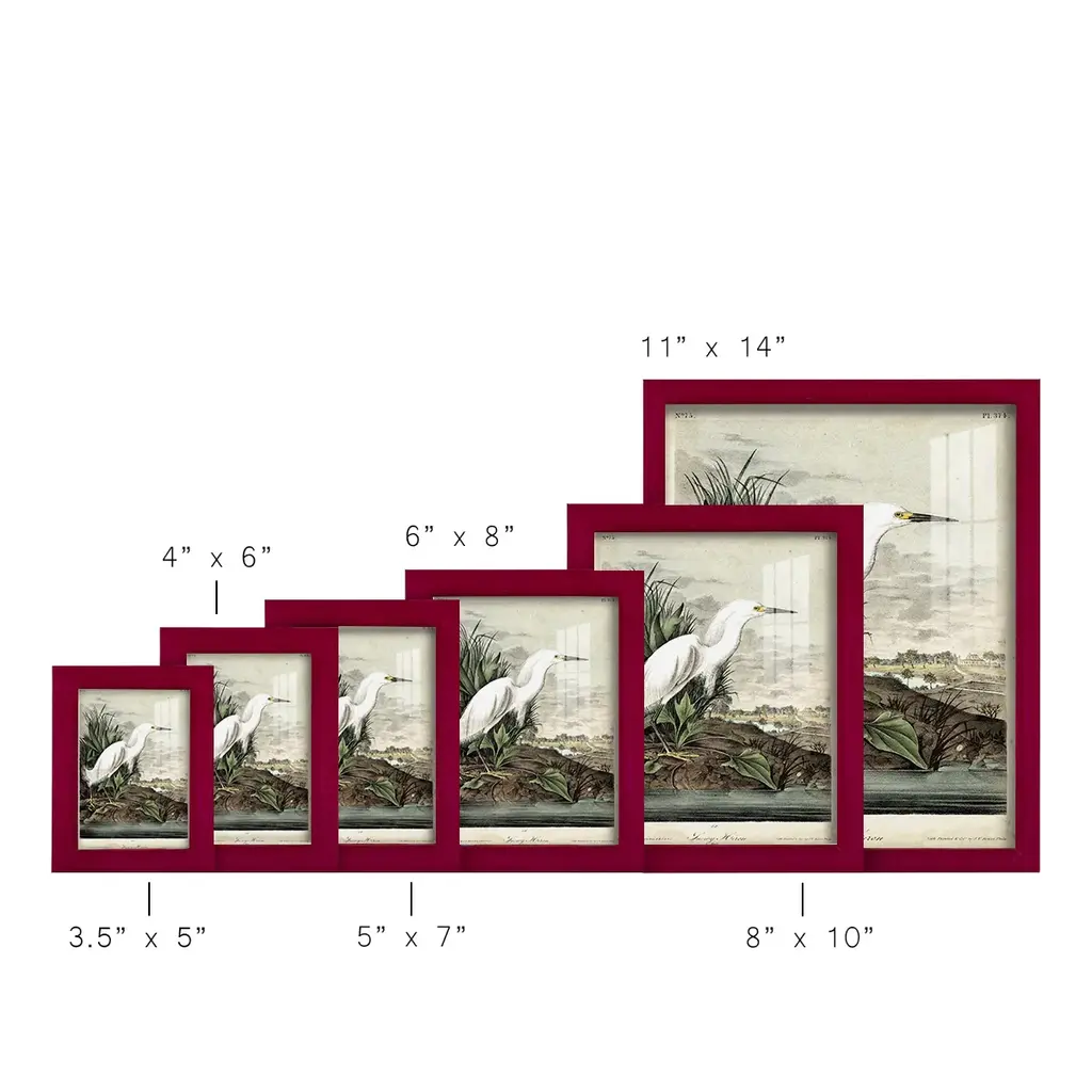 Snowy Heron -EZ SWITCH Framed Print w/glass-Cherry Red A delightful, framed print. Featuring a solid wood frame with real wood glass. This premium print is giclee quality. In addition, every frame features a removable back and table top stand. This allows you to change your art in the future or to just stand the art on a table for a new look. We are sure you'll enjoy our new series of EZ SWITCH Framed Art. Solid Wood Frame Real Glass Removable / Replaceable Art Built in Tabletop Stand Sizes range from 4x6 up to 12x15 - buy just one or pair them up as sets as you see fit.