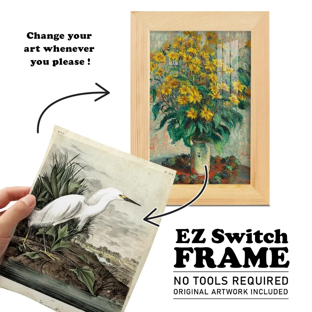 Snowy Heron -EZ SWITCH Framed Print w/glass-Cherry Red A delightful, framed print. Featuring a solid wood frame with real wood glass. This premium print is giclee quality. In addition, every frame features a removable back and table top stand. This allows you to change your art in the future or to just stand the art on a table for a new look. We are sure you'll enjoy our new series of EZ SWITCH Framed Art. Solid Wood Frame Real Glass Removable / Replaceable Art Built in Tabletop Stand Sizes range from 4x6 up to 12x15 - buy just one or pair them up as sets as you see fit.