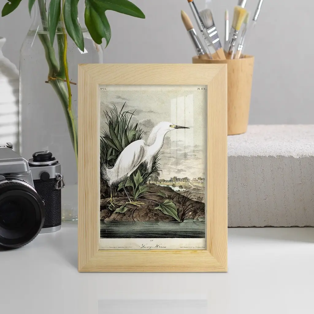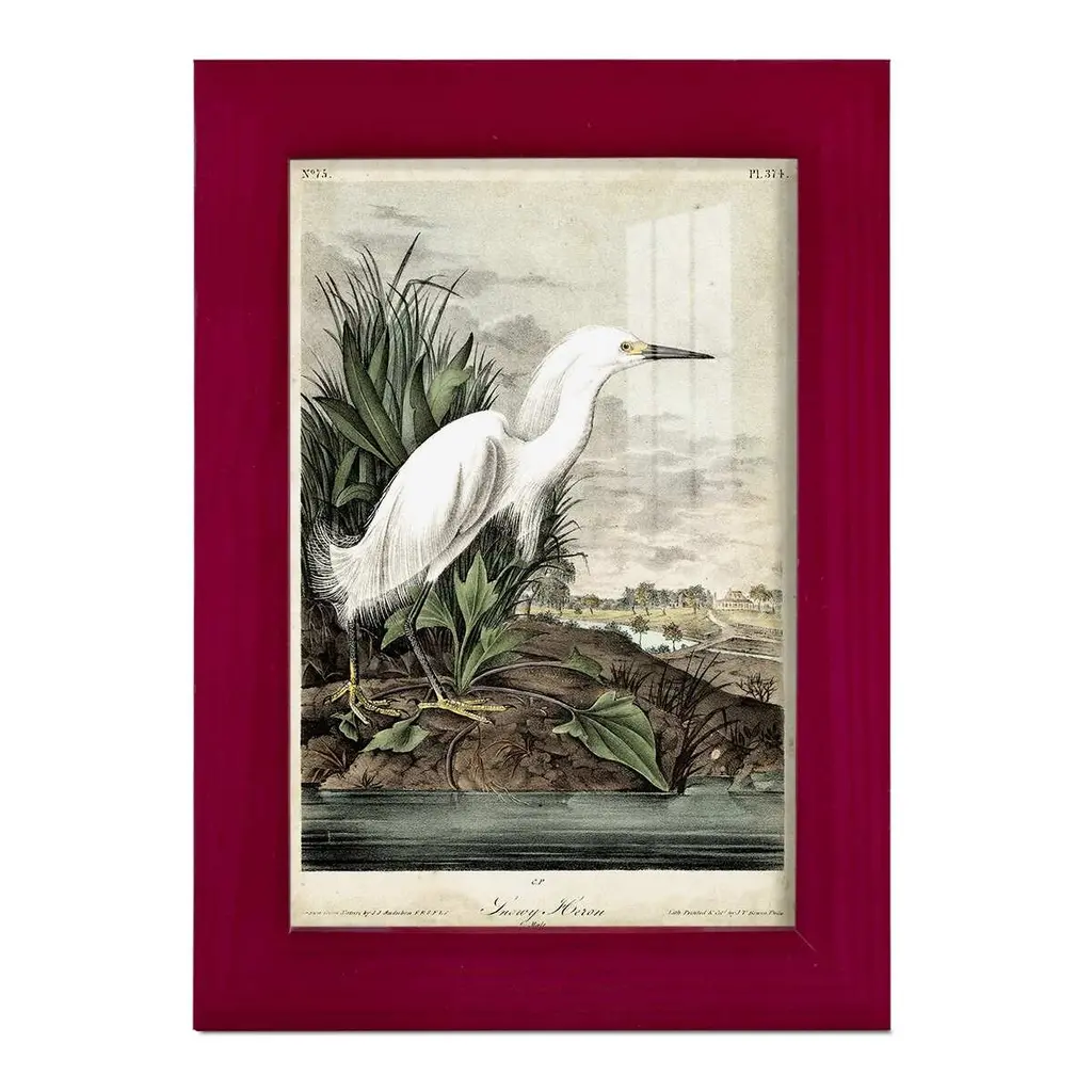 Snowy Heron -Framed Print W/glass-Cherry Red - 4X6 - Natural