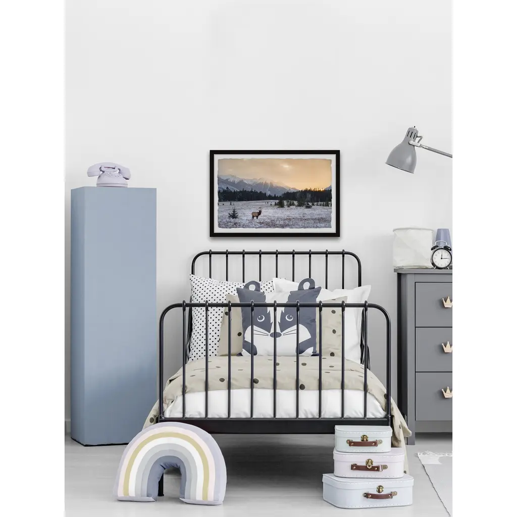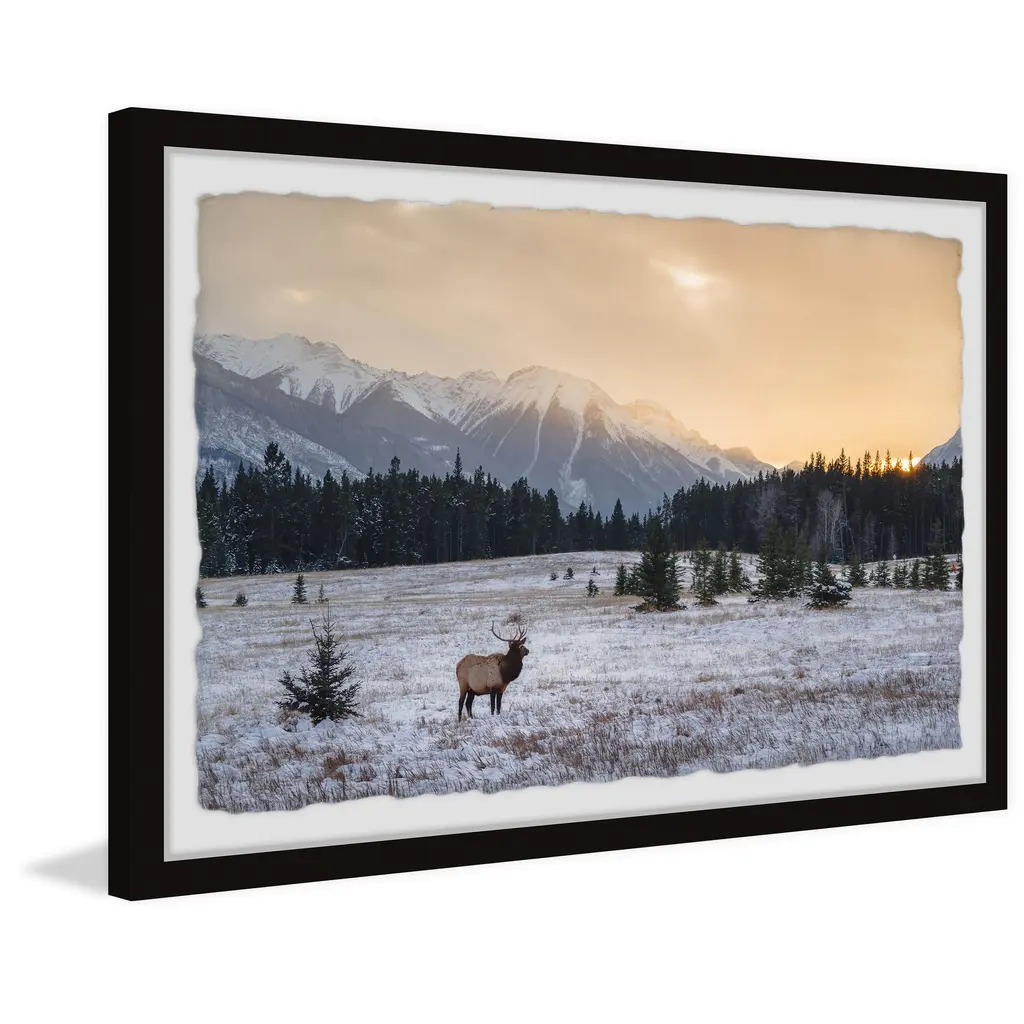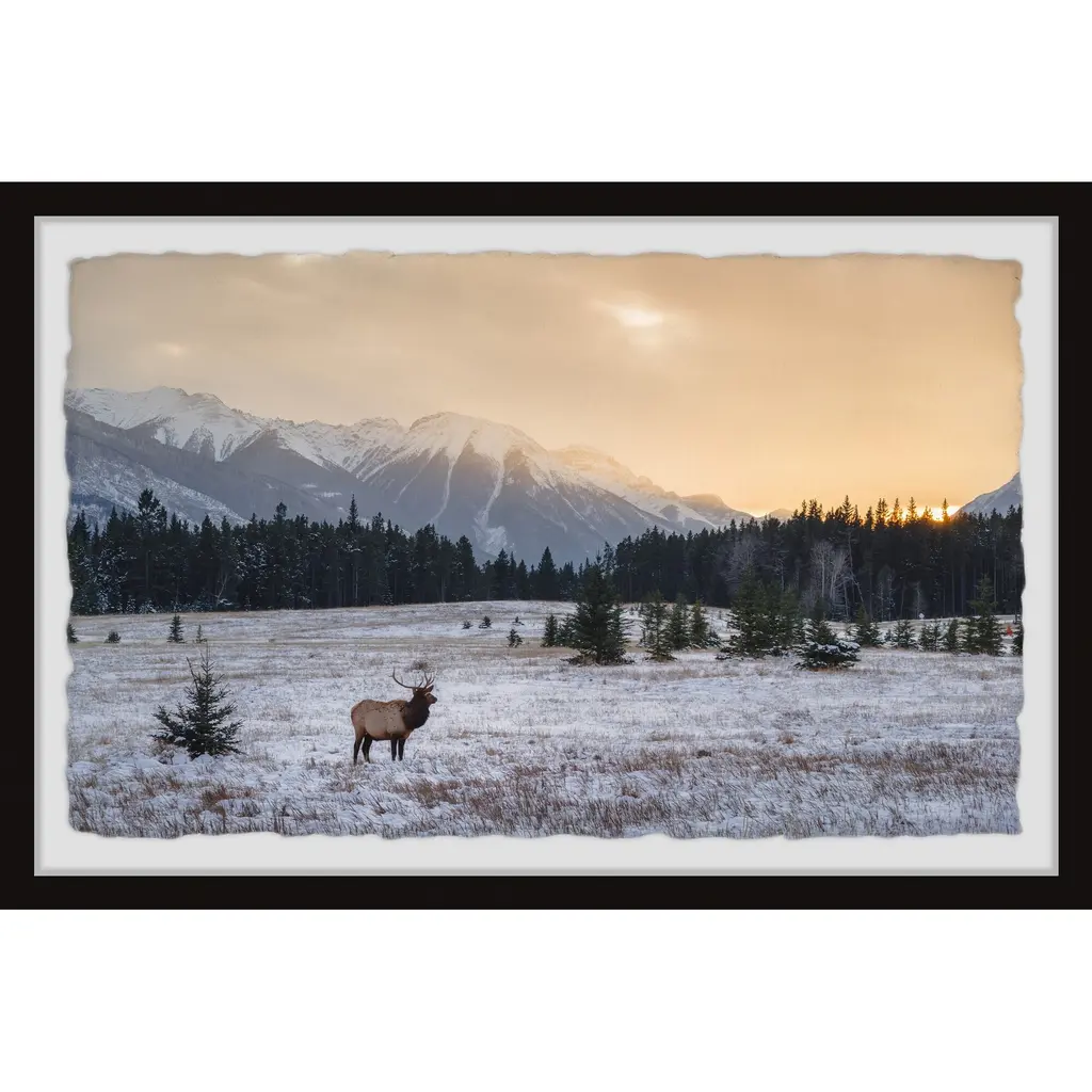 Put a tranquil scene on display by hanging this photographic print that showcases a winter sunset in the middle of a forest scattered with wildlife. Proudly printed in the USA, this piece is printed on high quality archive paper and professionally hand-framed. With wall-mounting hooks included, this artful accent is ready to hang up as soon as it reaches your front door. • Top quality Giclee print on high resolution Archive Paper • Hand cut deckled edges • High quality durable non-warping frame • Finished under shatter resistant plexiglass • Arrives ready to hang • Includes a certificate of authenticity • Printed in the USA