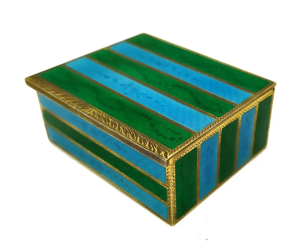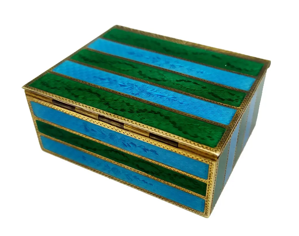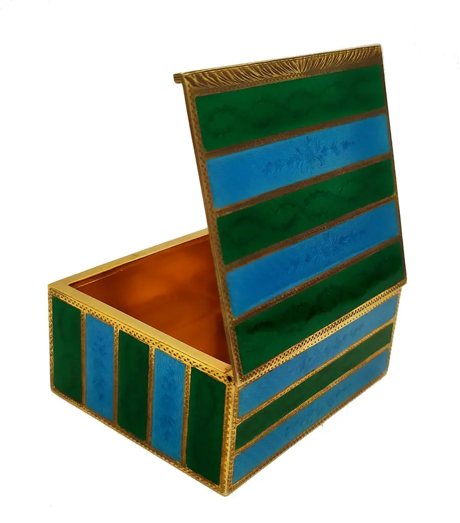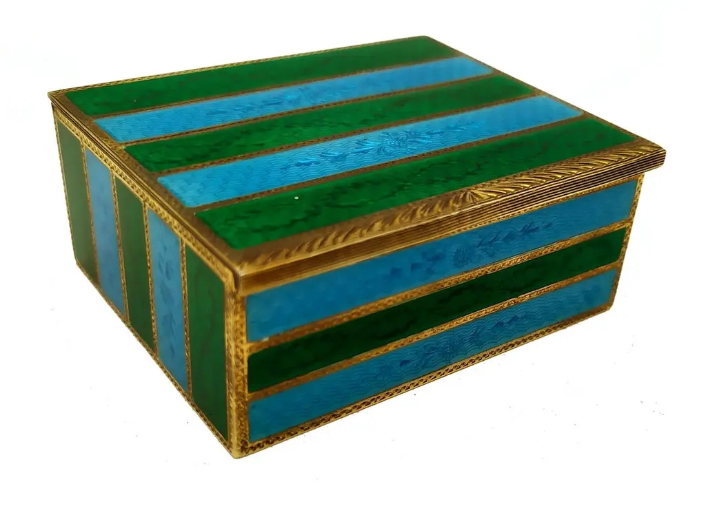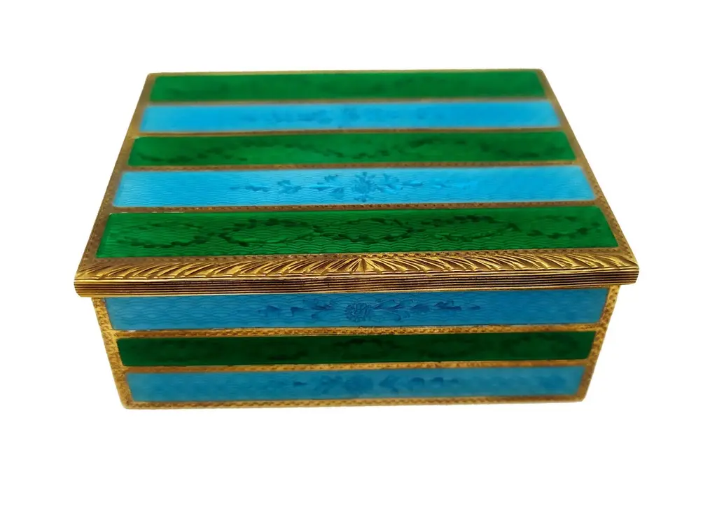 Snuff Box Sterling Silver Green And Sky Stripes Guilloche Enamel Box Salimbeni